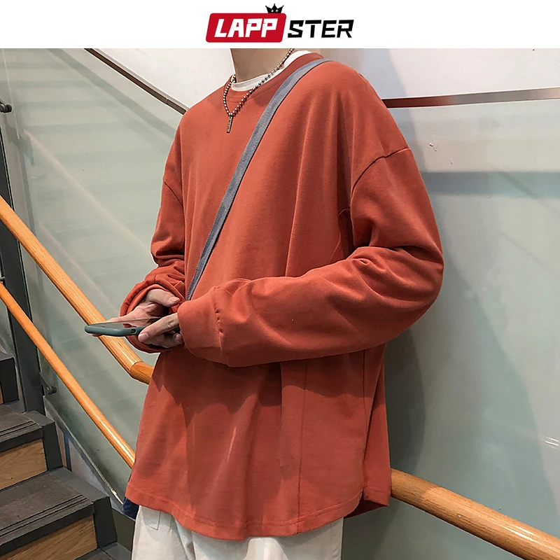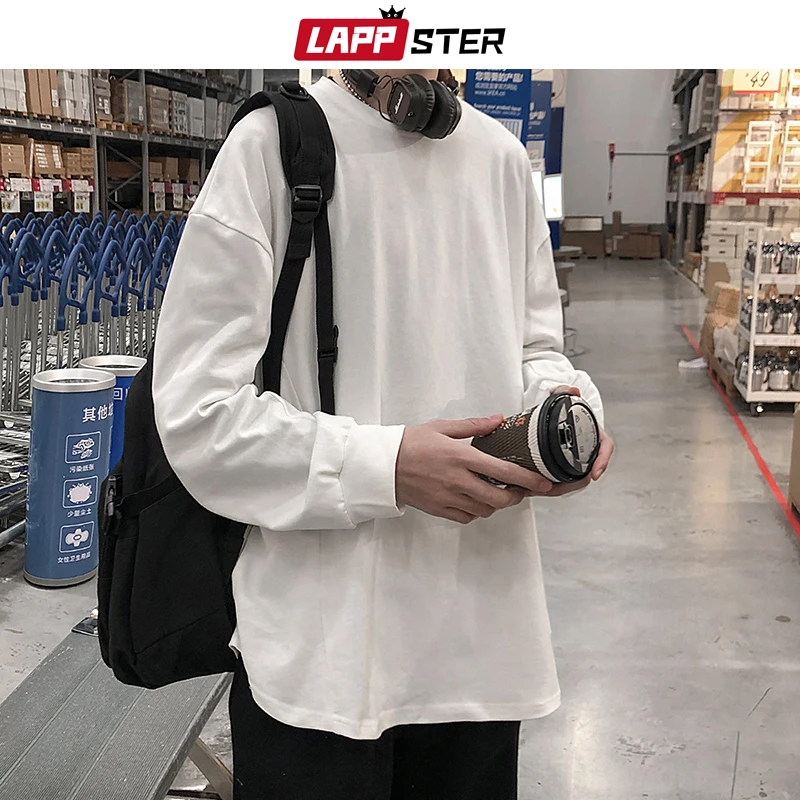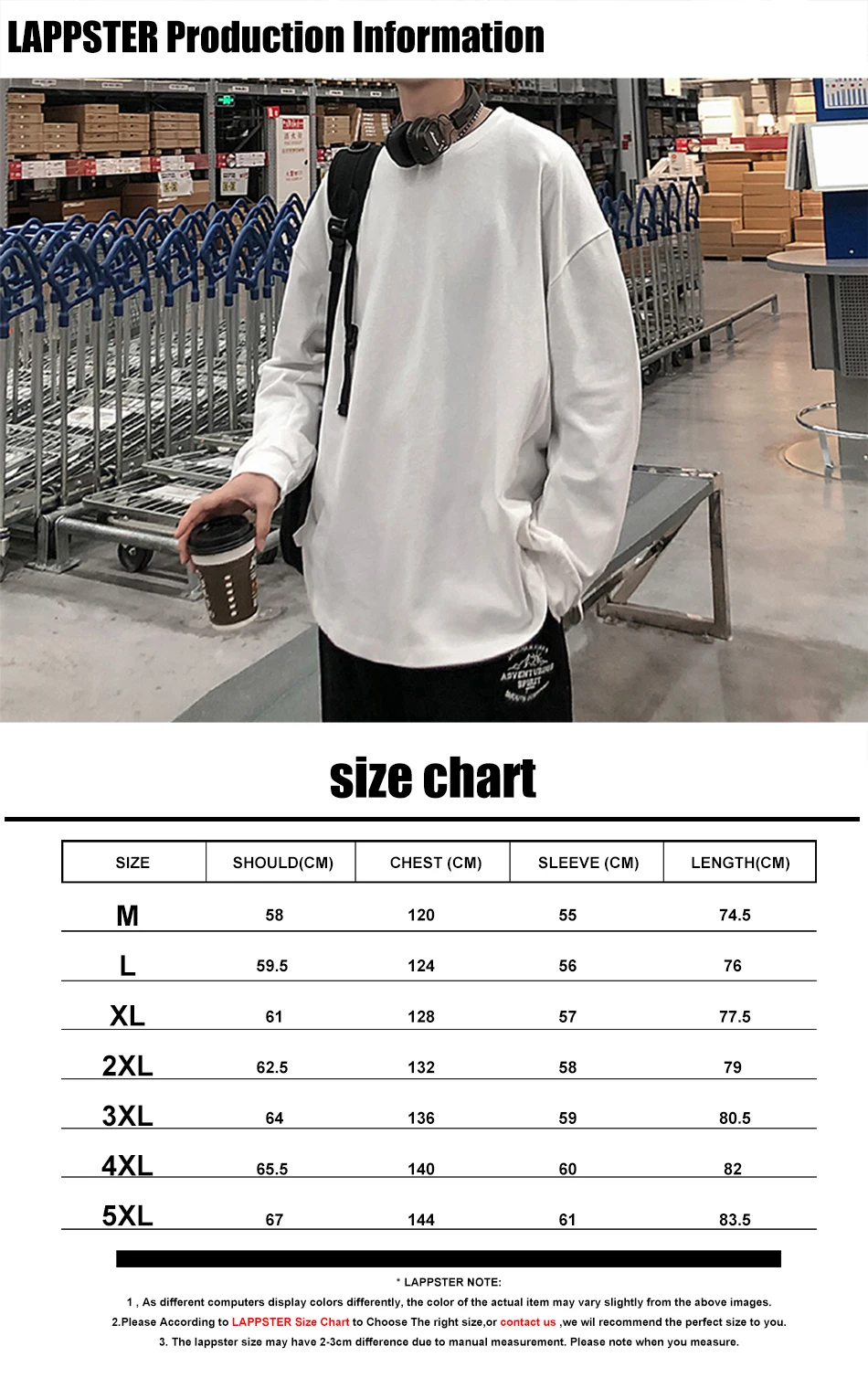 Футболка LAPPSTER мужская оверсайз с графическим рисунком, уличная одежда в стиле хип-хоп, Однотонная рубашка с длинным рукавом, 5 цветов, 5XL, 2021