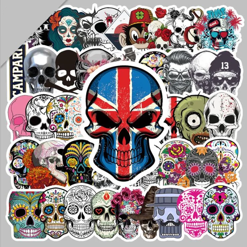 50 шт. ужасный Стиль черепа граффити наклейки Водонепроницаемый ПВХ для автомобиля шлем велосипеда мотоцикла ноутбук гитары классического автомобиля стикер