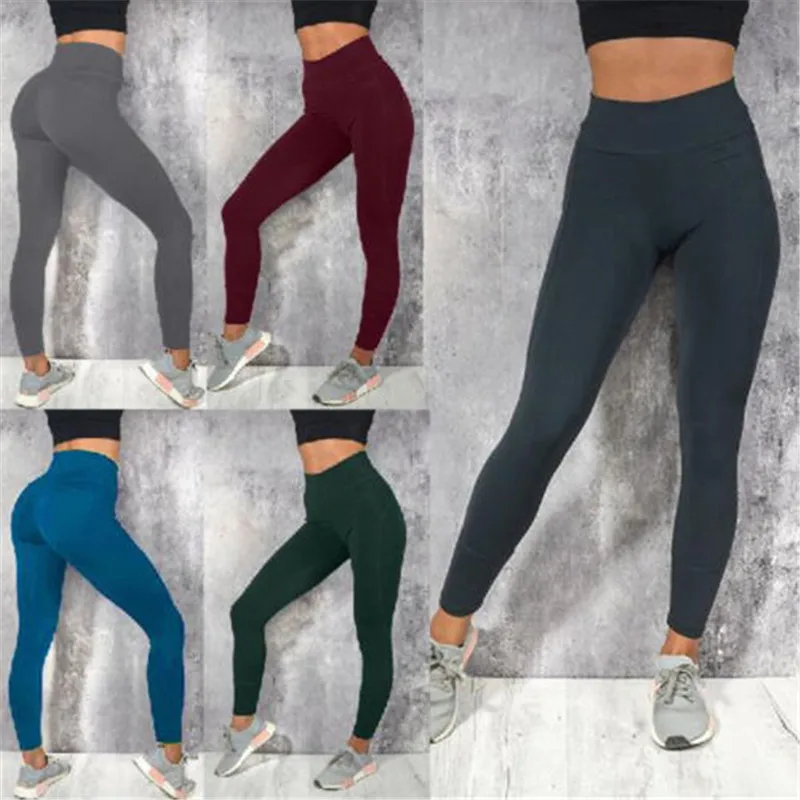 Женские спортивные Леггинсы с высокой талией, Однотонные эластичные, для фитнеса, бега, тренировок, тренажерного зала, упражнений, женские повседневные брюки S-XL