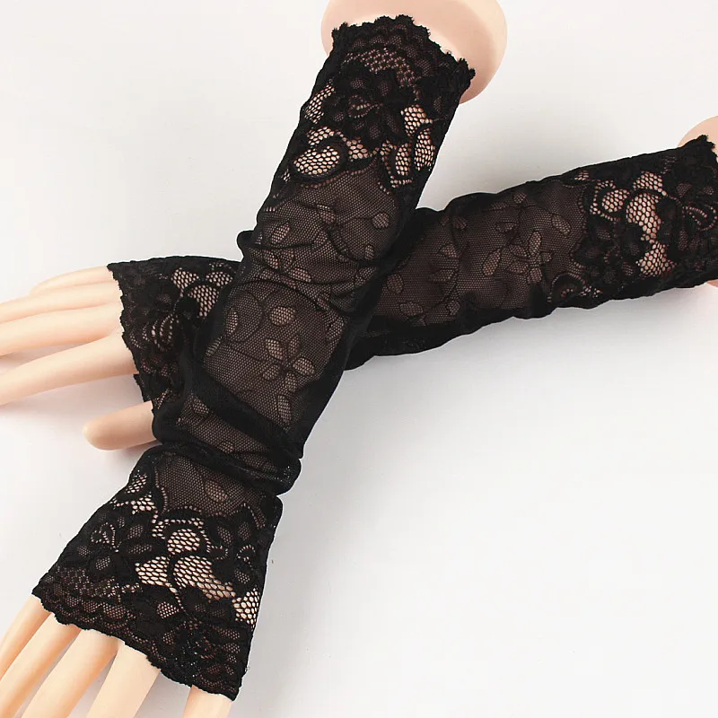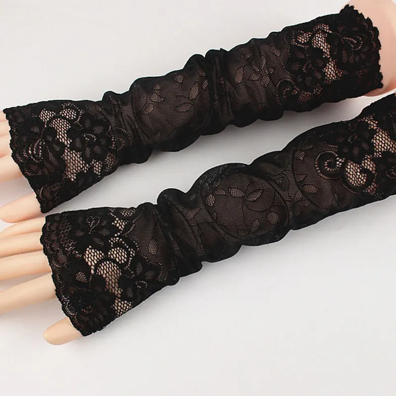 Летние кружевные женские перчатки, солнцезащитные длинные кружевные митенки без пальцев, закрытые шрамы, эластичные рукава, женские перчатки для вождения, 2020