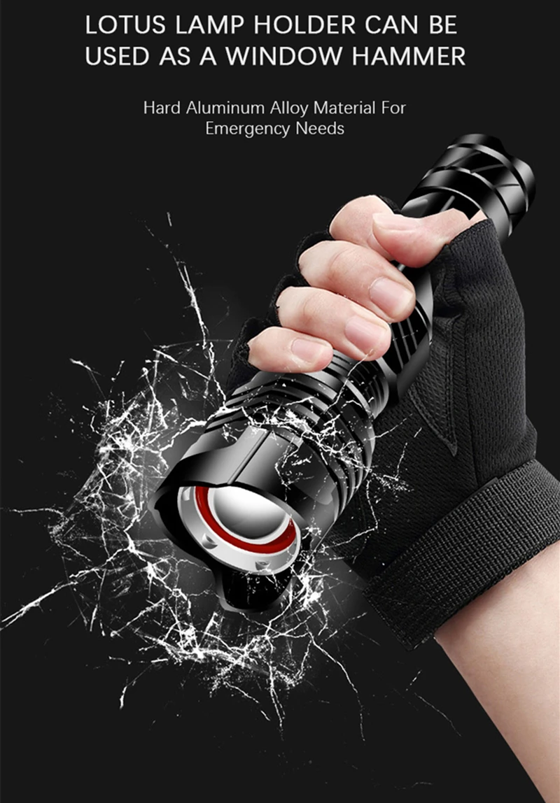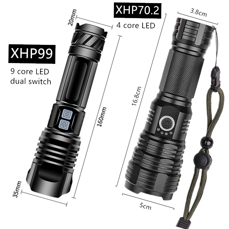 Светодиодный ная лампа: новейшая XHP100 Размер: 17,8 см * 4,8 см * 3,5 см Вес нетто: 232 г Материал: алюминиевый сплав Переключатель: двойной переключатель, переключатель питания + функциональный переключатель Питание: 1 батарея 26650 Зарядка: Зарядка через Micro USB, поддержка выхода Выход: 5 в 1 А Режим переключения: выключатель питания (3 режима освещения: слабый-средний-сильный) + Функциональный переключатель (Нажмите Супер яркий-двойной щелчок вспышки) Увеличение: телескопическое увеличение Водонепроницаемость: IPX5 Время зарядки: 3-5 часов