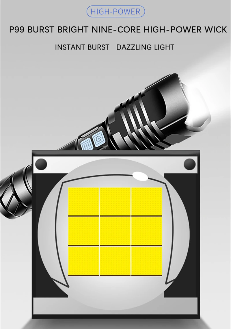 Светодиодный фонарик XHP100, водонепроницаемый тактический фонарь 9 ядер, с двойным переключателем, с зарядкой от USB, для кемпинга и охоты