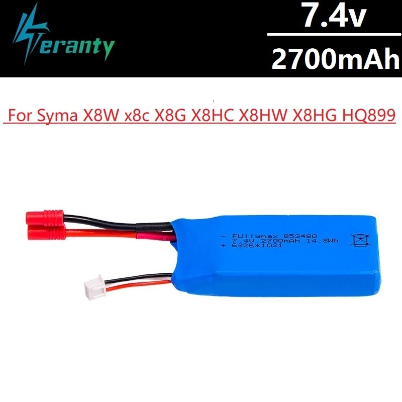 Аккумулятор Lipo 7,4 В 2700 мАч 25C для Syma X8W x8c X8G X8HC X8HW X8HG HQ899 T70CW, запасные части для радиоуправляемого квадрокоптера, аккумулятор 2s 7,4 В