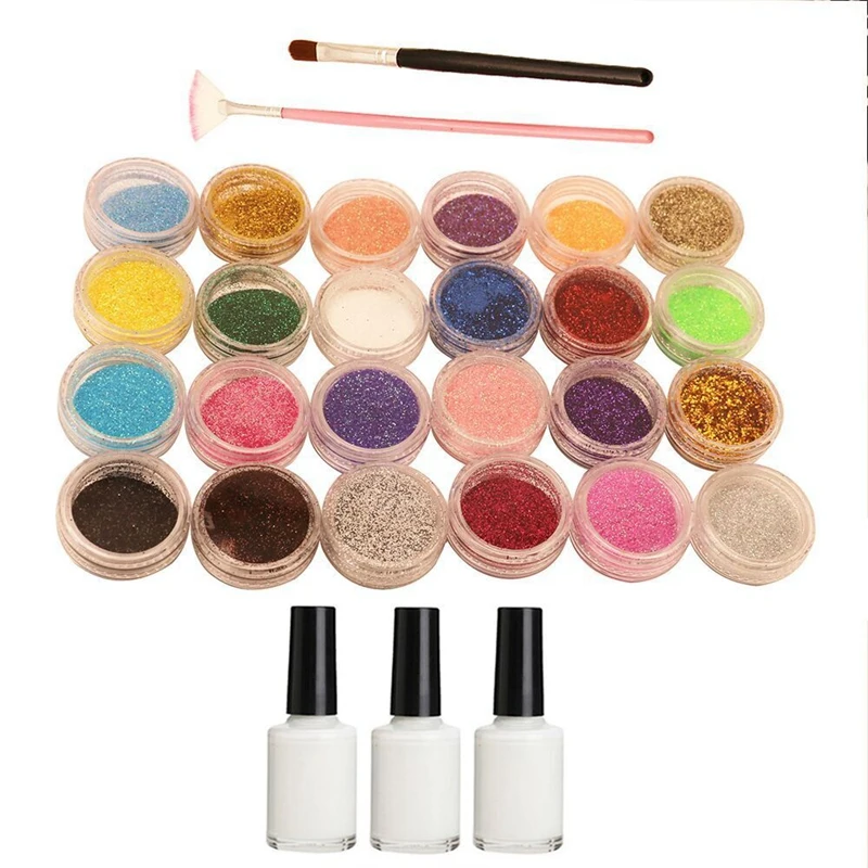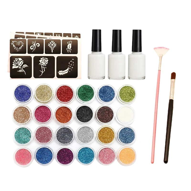 24 цвета, блестящий полуперманентный маленький клей для татуажа, многоцветный Блестящий тату-порошок, набор для временной живописи тела