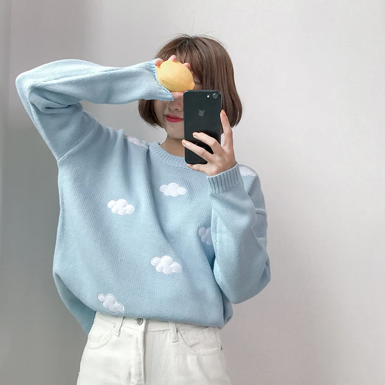 Пуловер женский вязаный, весна-осень, в стиле Харадзюку