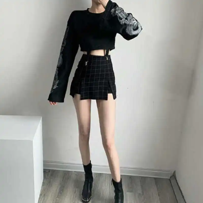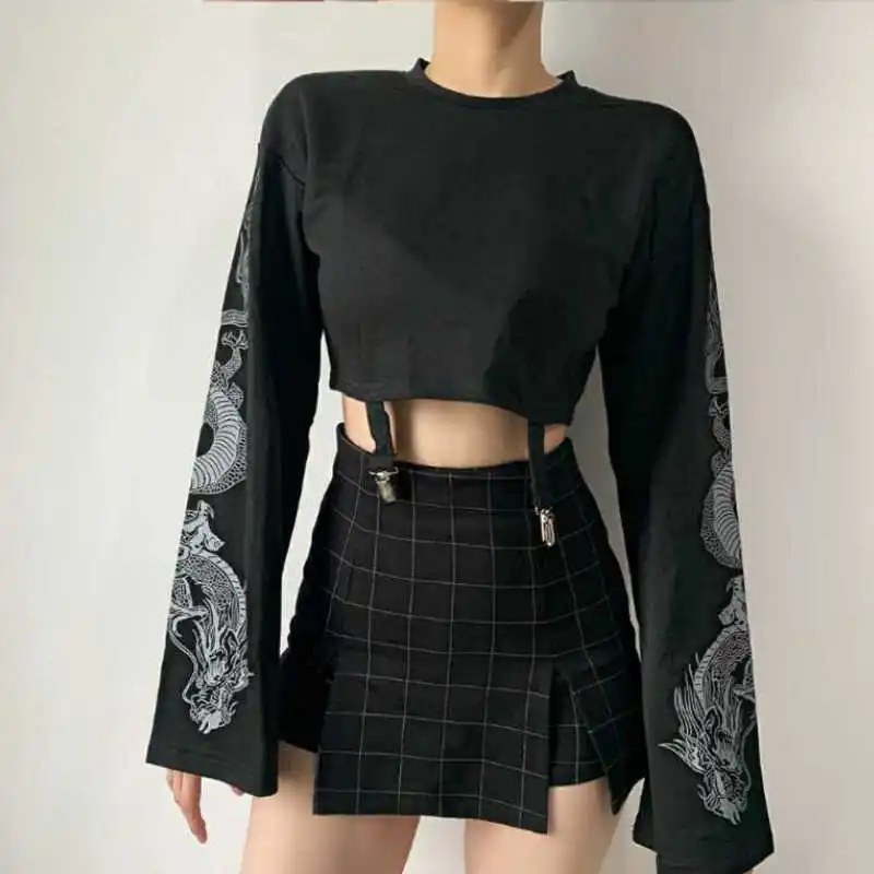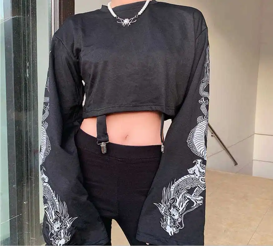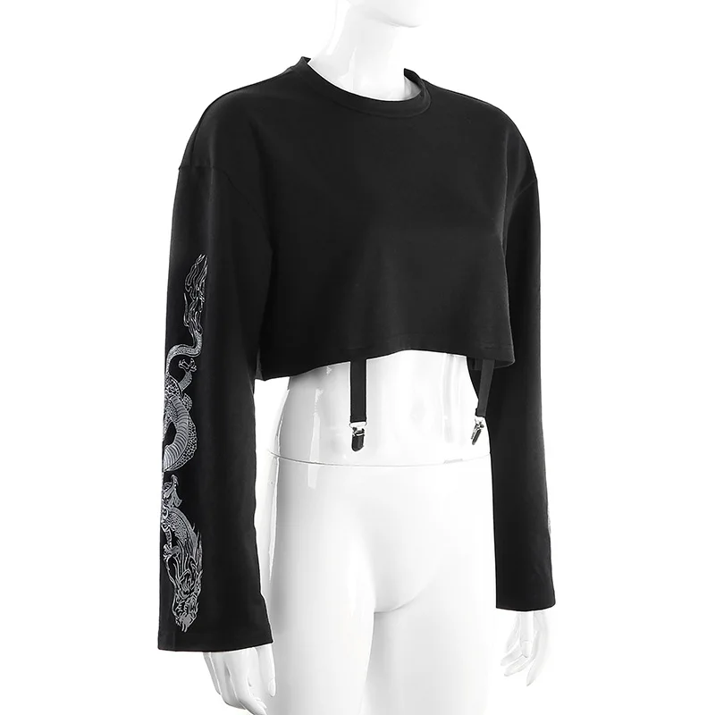 Укороченные толстовки с длинным рукавом и принтом дракона, готическ...