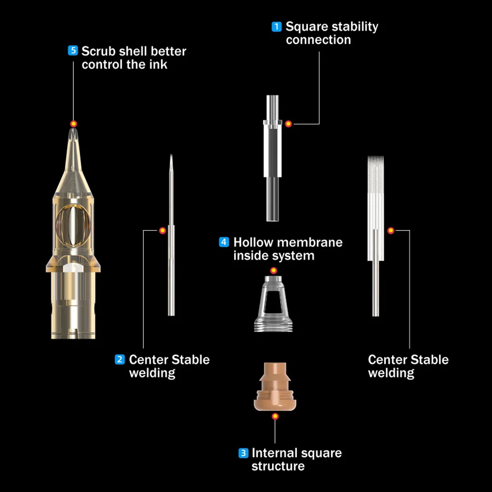 Картриджи для татуировок одноразовые, 0,35 мм, 20 шт.1 коробка