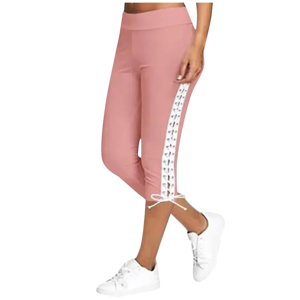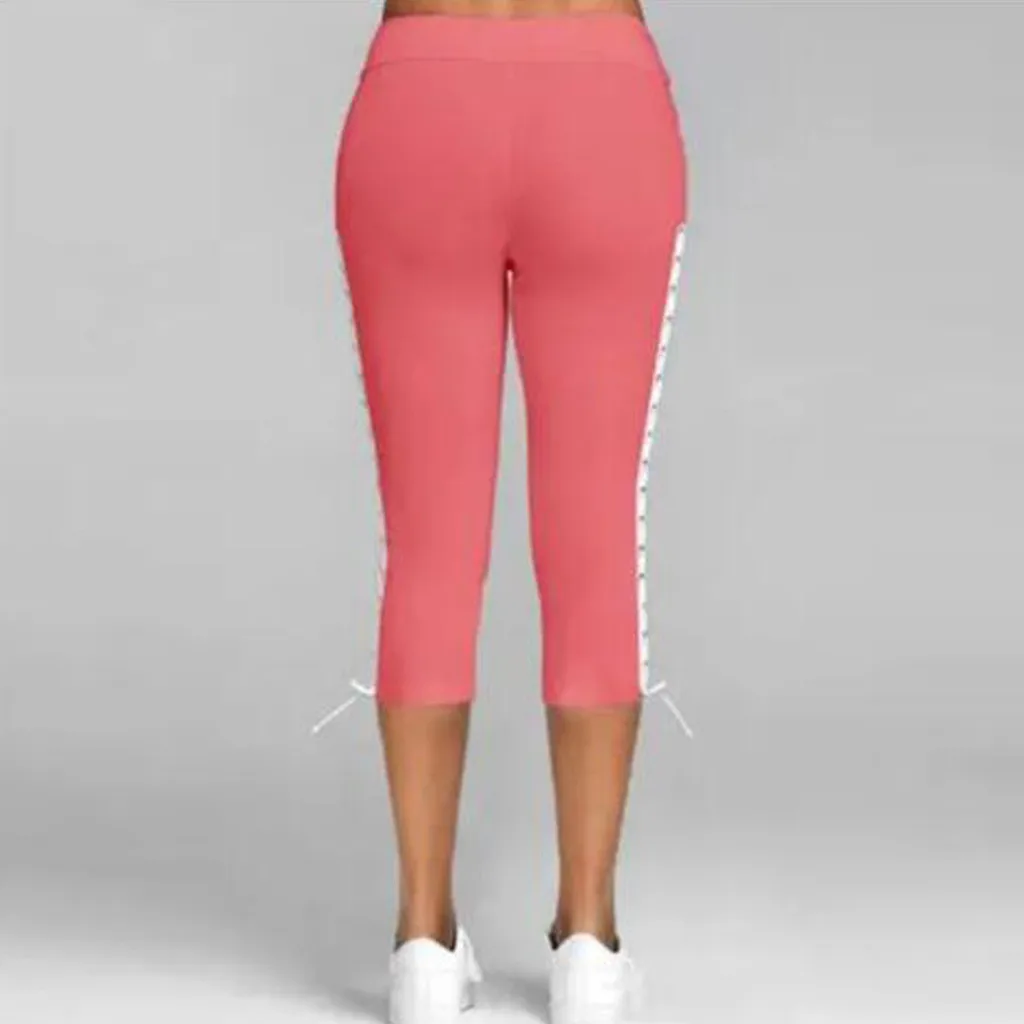 Женские спортивные брюки для фитнеса, летние эластичные Капри с бок...