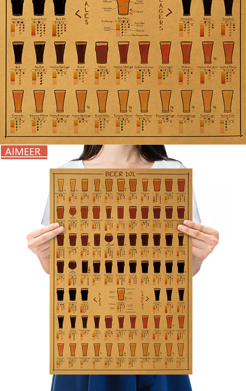 Ayr карта рецепта пива, ретро постер из крафт-бумаги, винтажное украшение для дома, живопись, основание, кафе, бар, ресторан, Настенная Наклейка