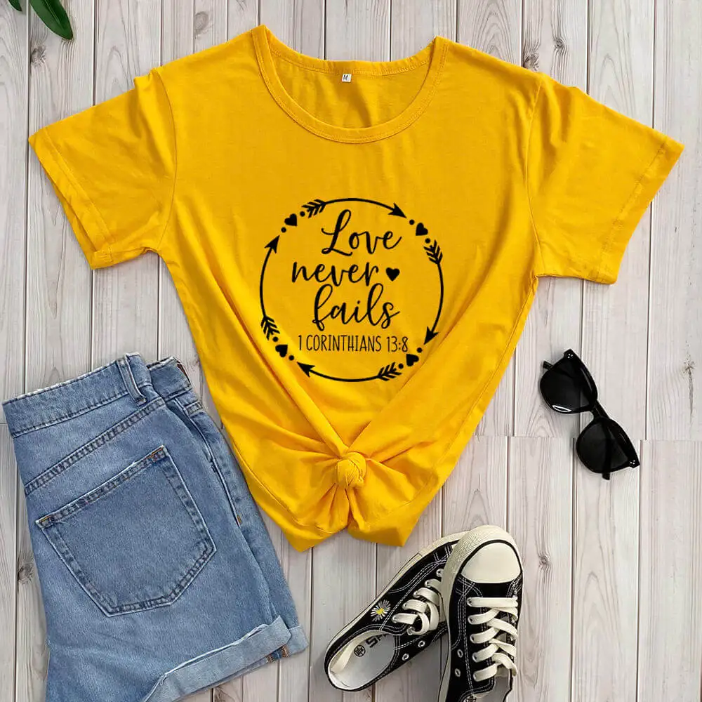 Забавная футболка из 100% хлопка с надписью Love Never Fails Christian