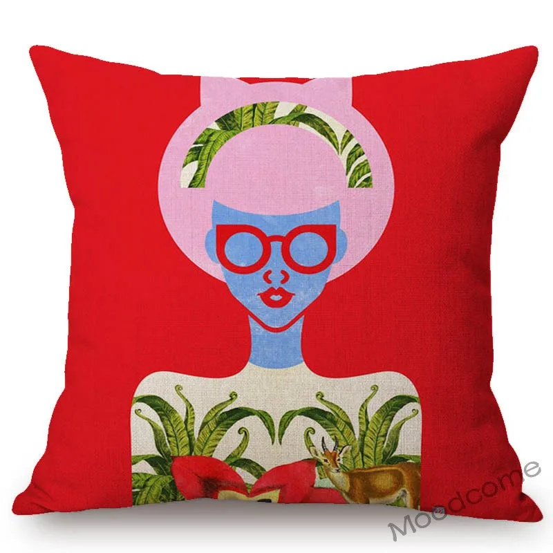 Модная наволочка из хлопка и льна с изображением девушки из мультфи...