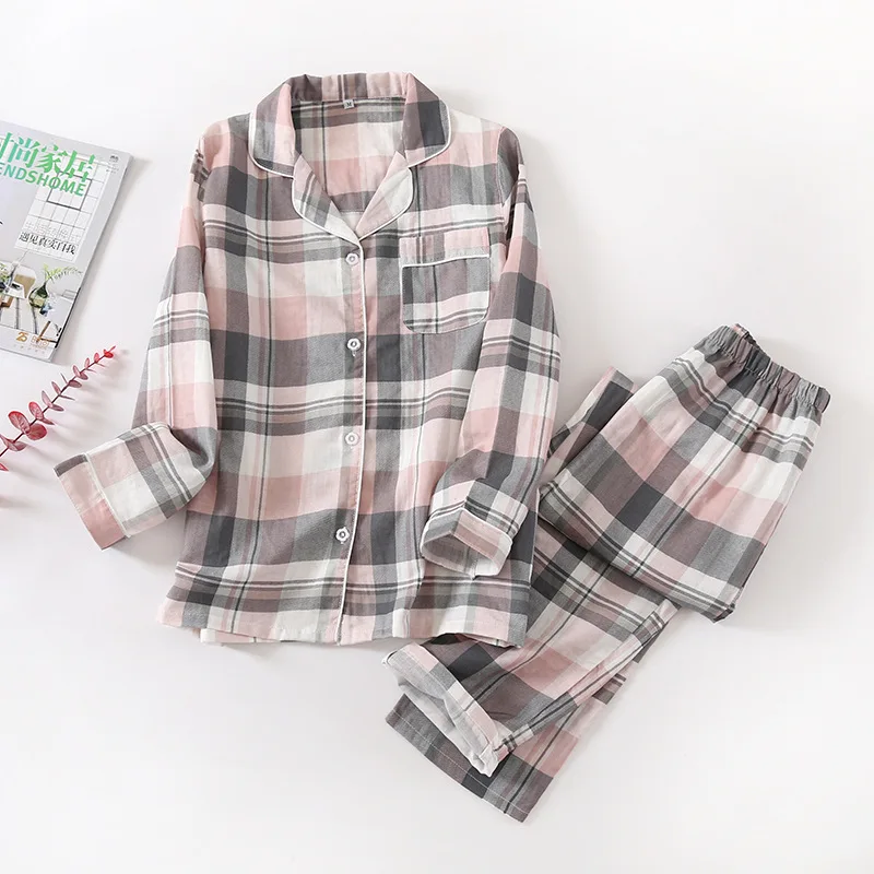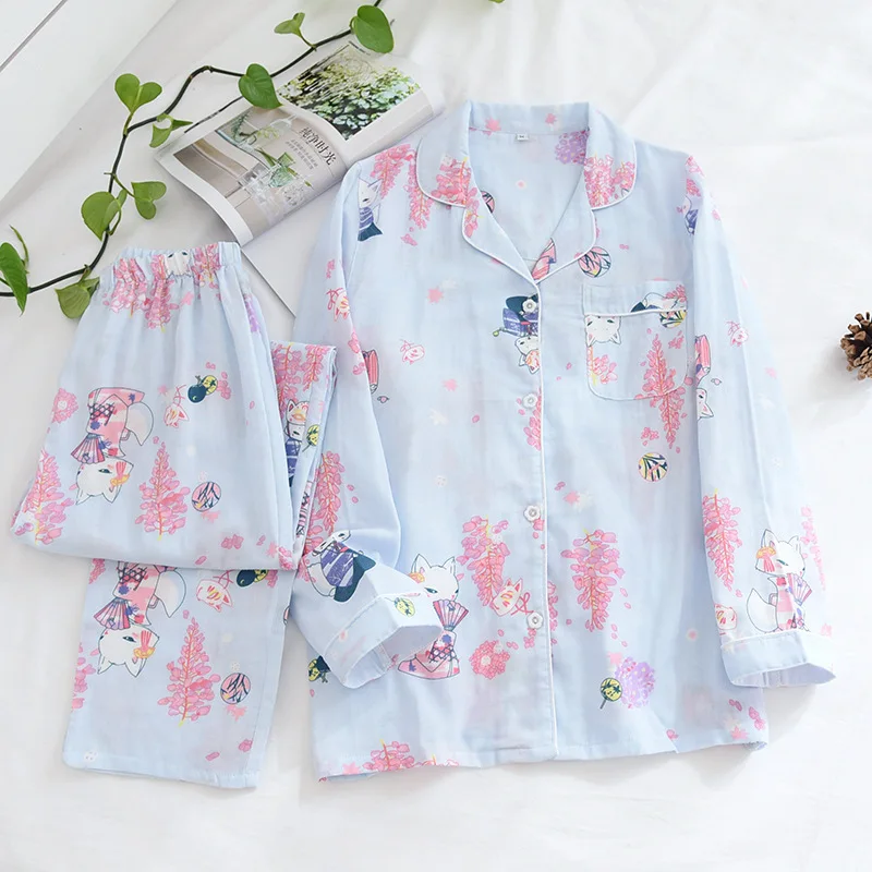 Японские хлопковые газовые пижамные костюмы для пар, мужские хлопко...