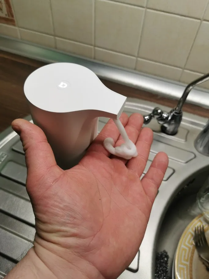 Семья довольна, установили и в ванной и на кухне. Гости так же восторге. Экономия места и эстетика на мойке, экономия мыла. Разбавляется 1:5 (мыло:вода) работает с любым жидким мылом. Для пуска надо несколько раз прокачать т. е. Поднёся руки ждать когда выгонит воздух. Из минусов - не подключается к системе Mi Home