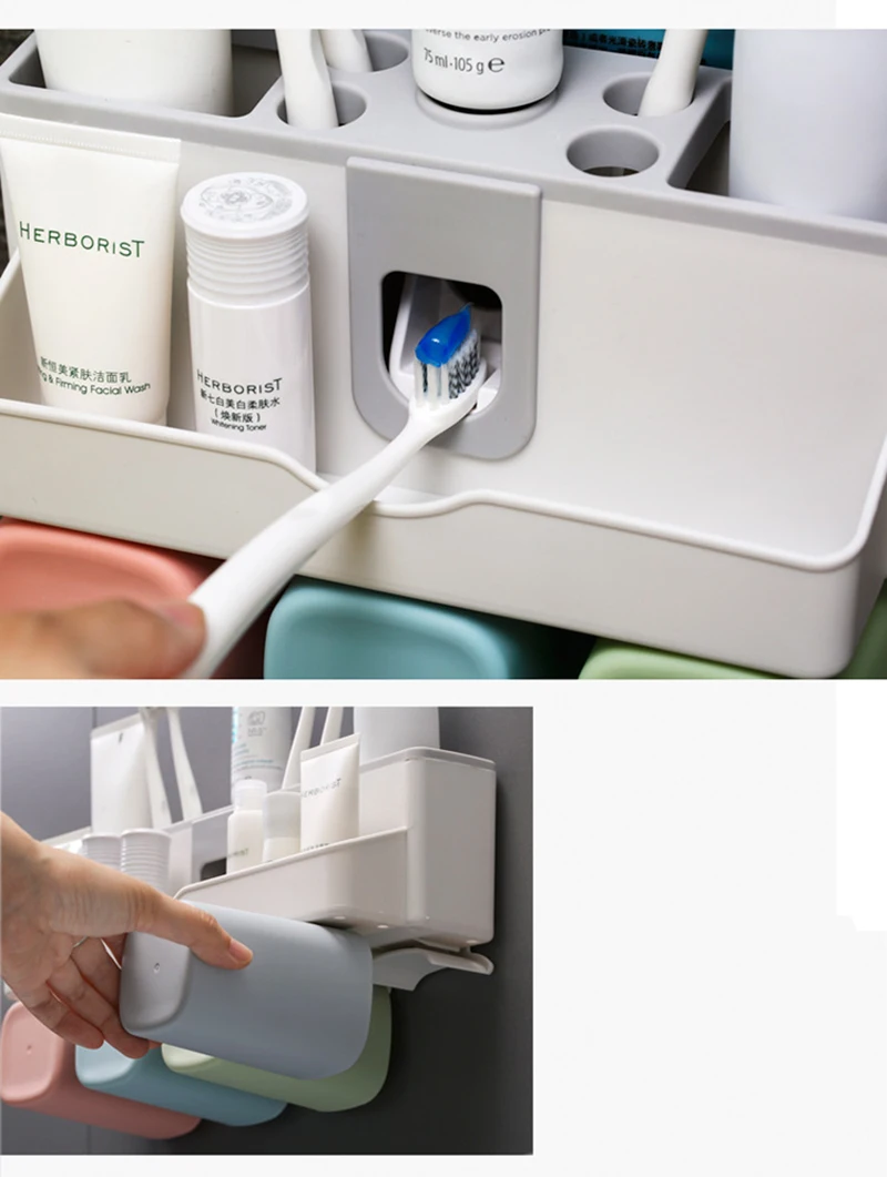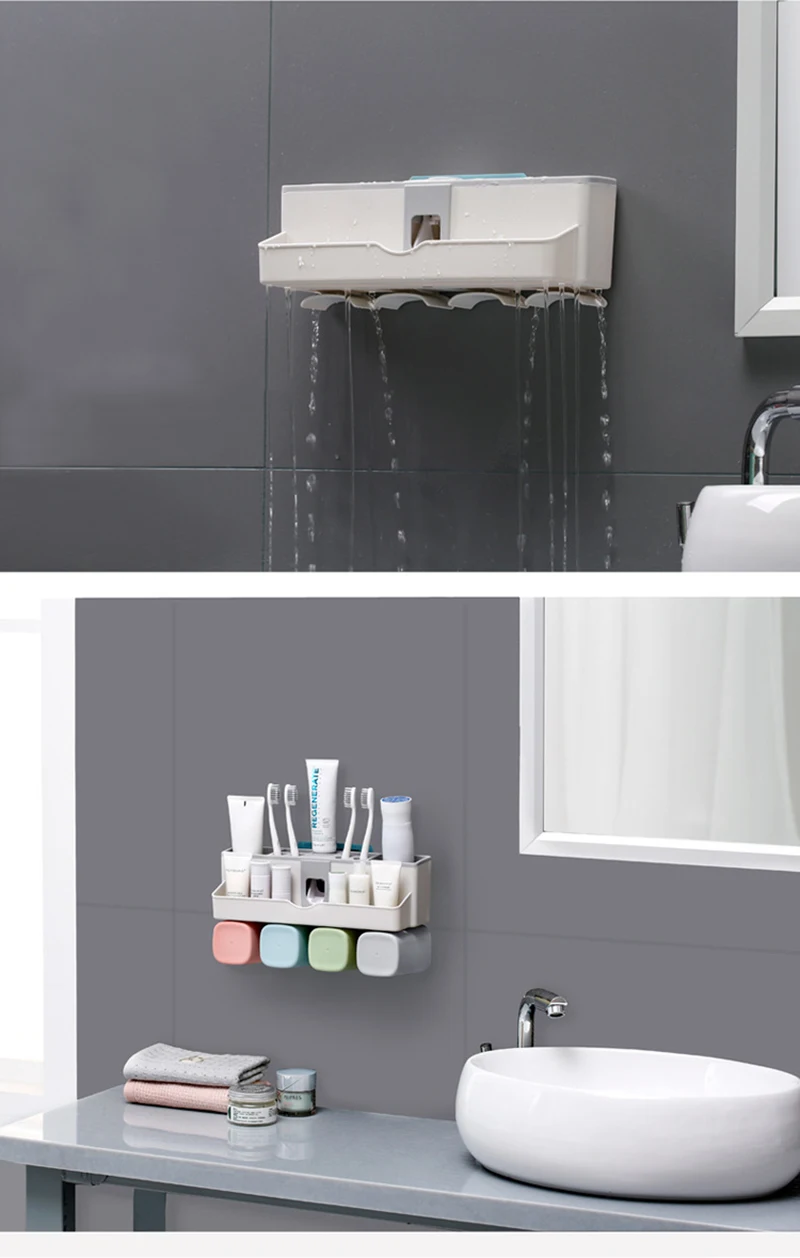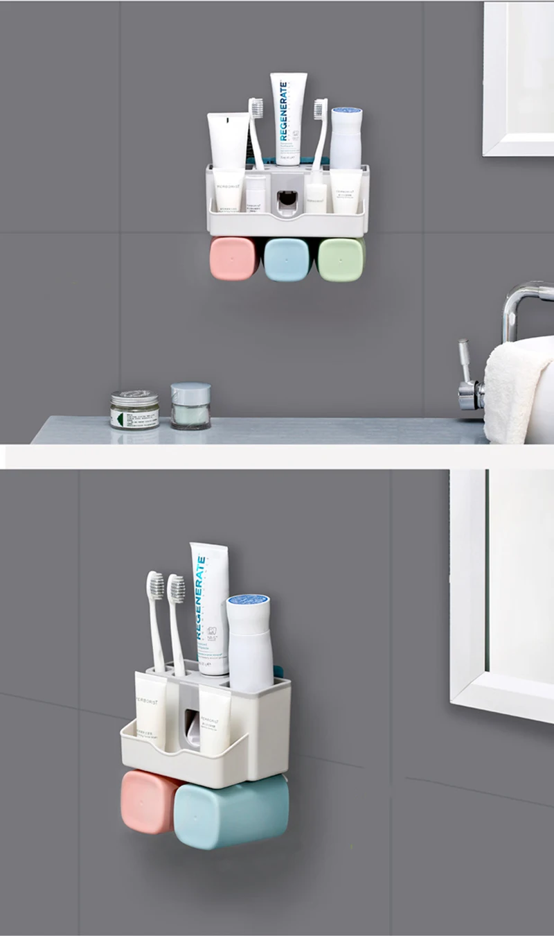 Автоматический Дозатор зубной пасты XINCHEN, пылезащитный держатель для зубных щеток с чашками, настенная полка без гвоздей, набор аксессуаров для ванной комнаты