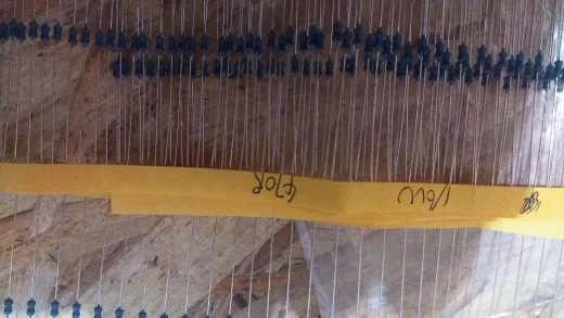 Спасибо честному продавцу. Разисторы получены. Полоса допуска коричневого цвета, что соответствует 2 %. Краска полосок нанесена небрежно.