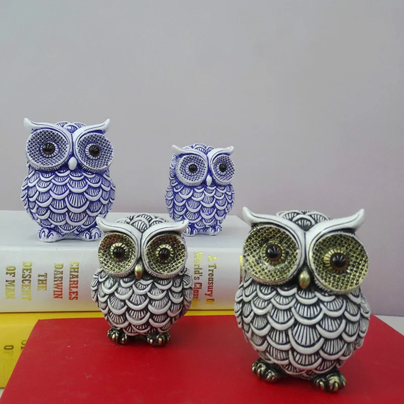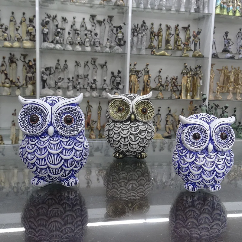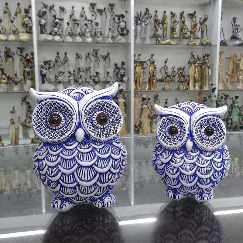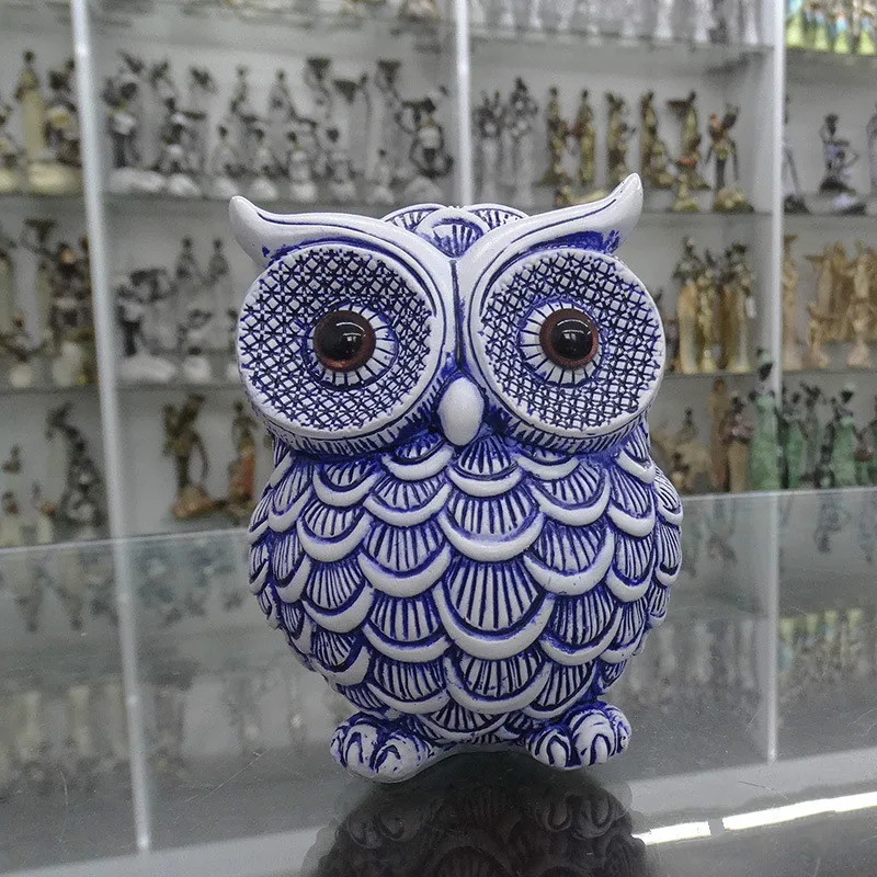 Полимерная Сова BUF, украшение, милое животное, украшение для дома, ремесла, сине-белая фарфоровая сова, скульптура, настольная фигурка