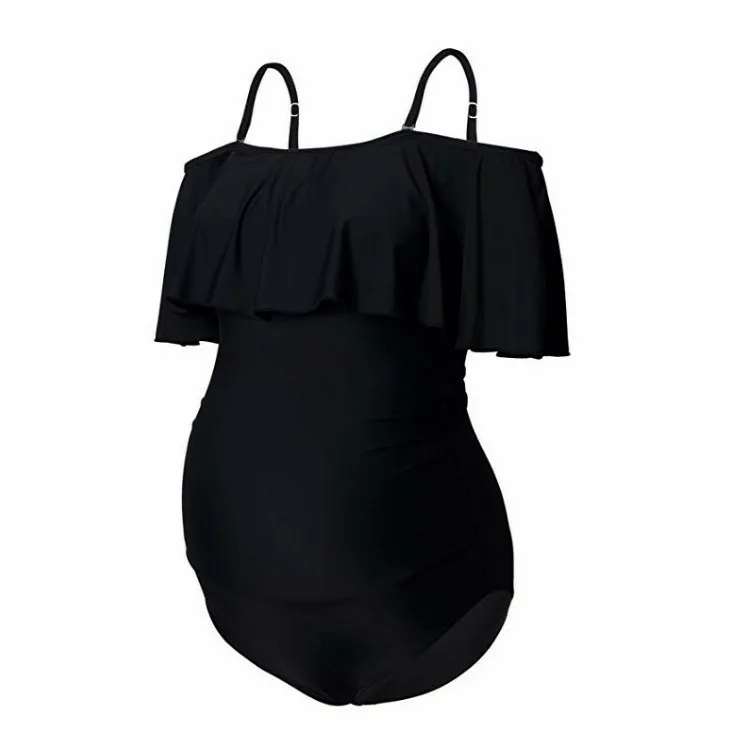 Купальник для беременных женщин с большими оборками и открытыми пле...
