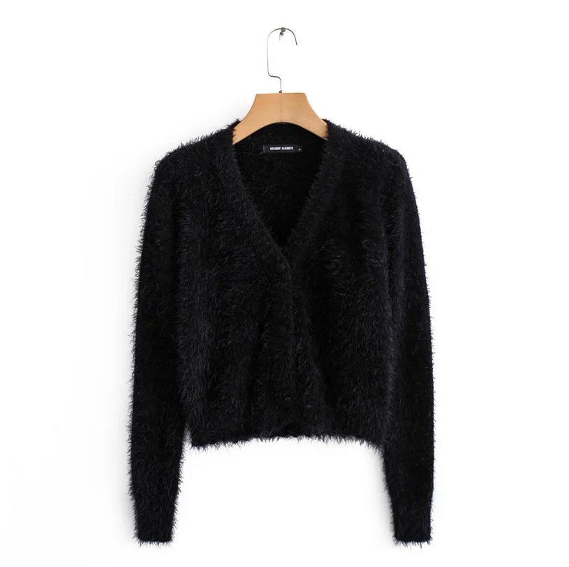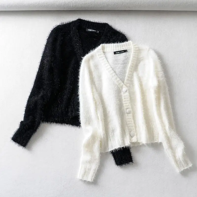 Пушистый белый Укороченный кардиган, Женский кавайный свитер, вязаный укороченный топ, свитер, корейский Повседневный женский свитер с длинным рукавом, осень 2020