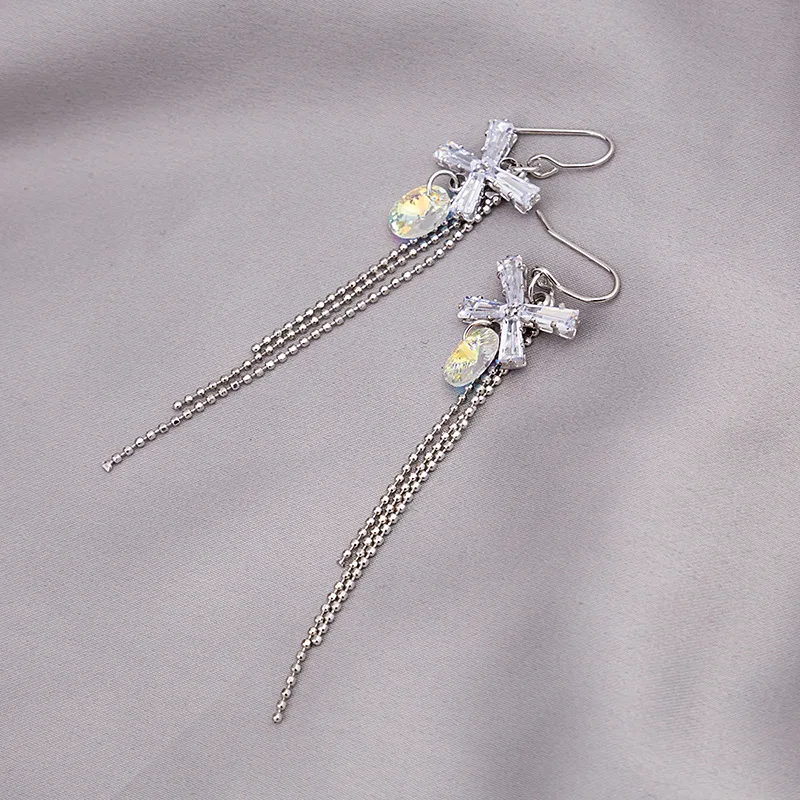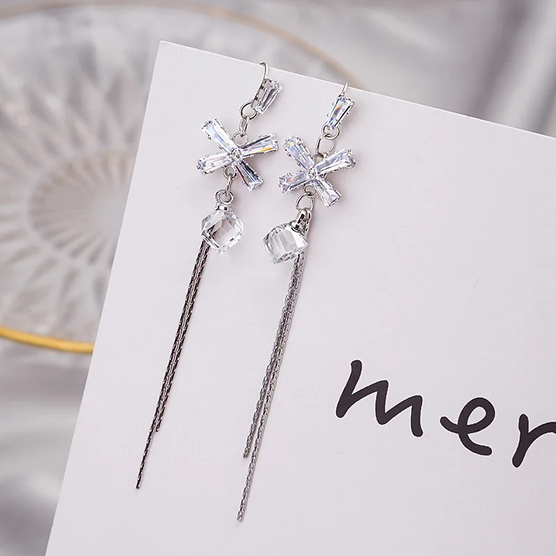 Милые Красочные циркониевые длинные серьги с бантом для женщин, женские Геометрические Свадебные Подвесные серьги, серьги