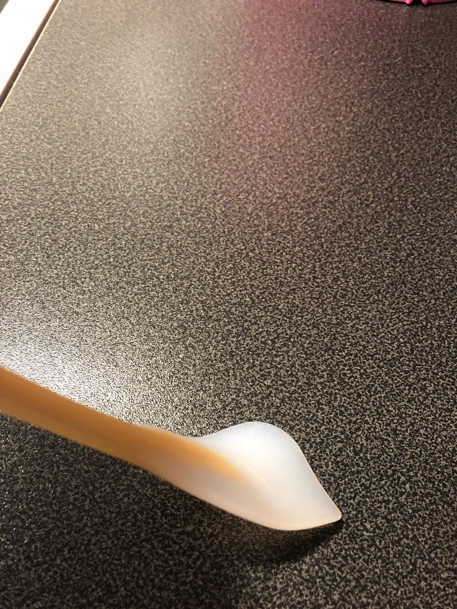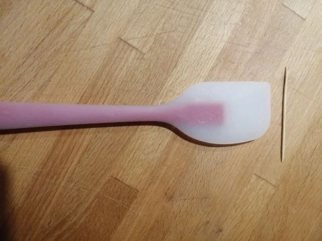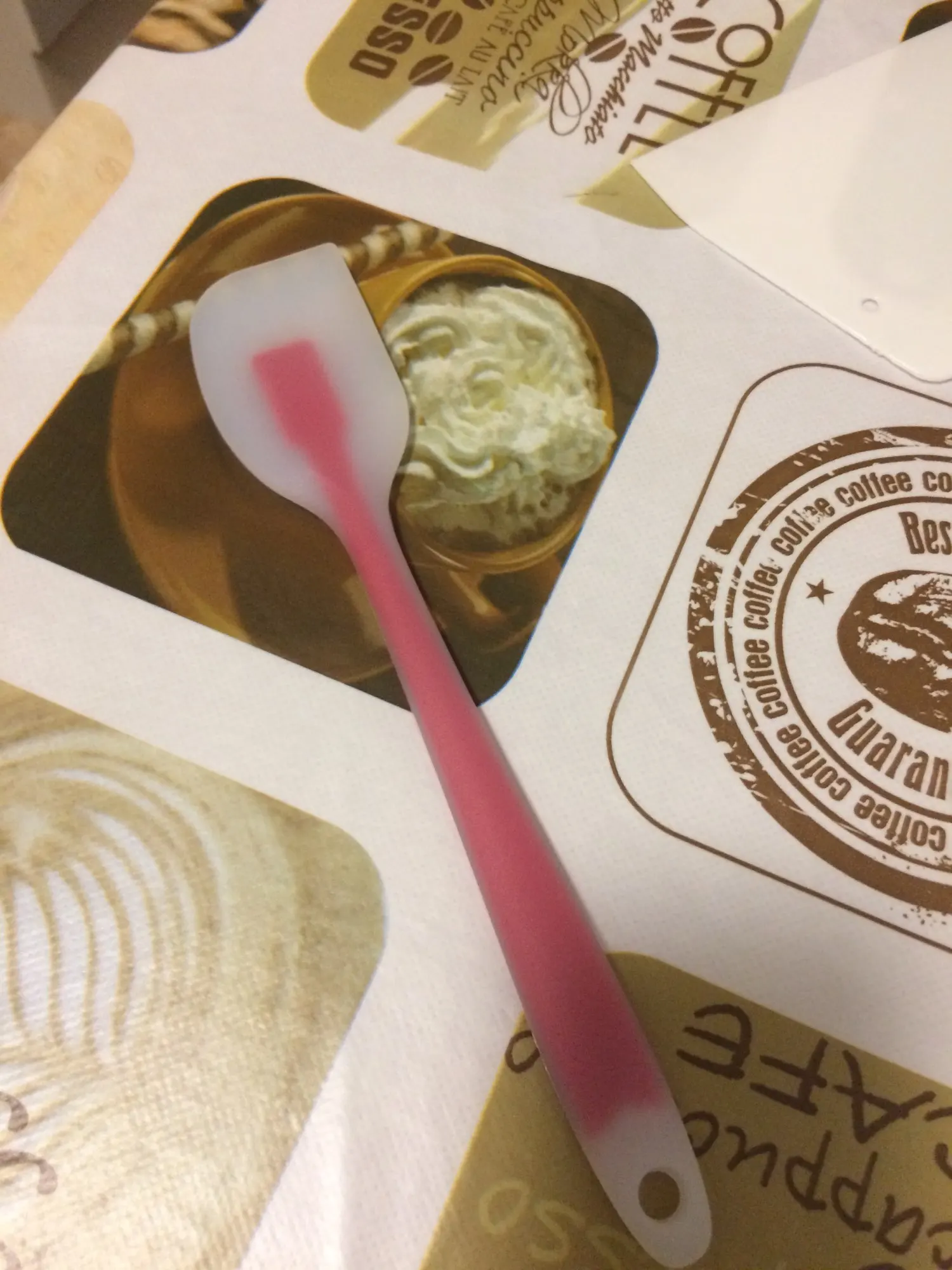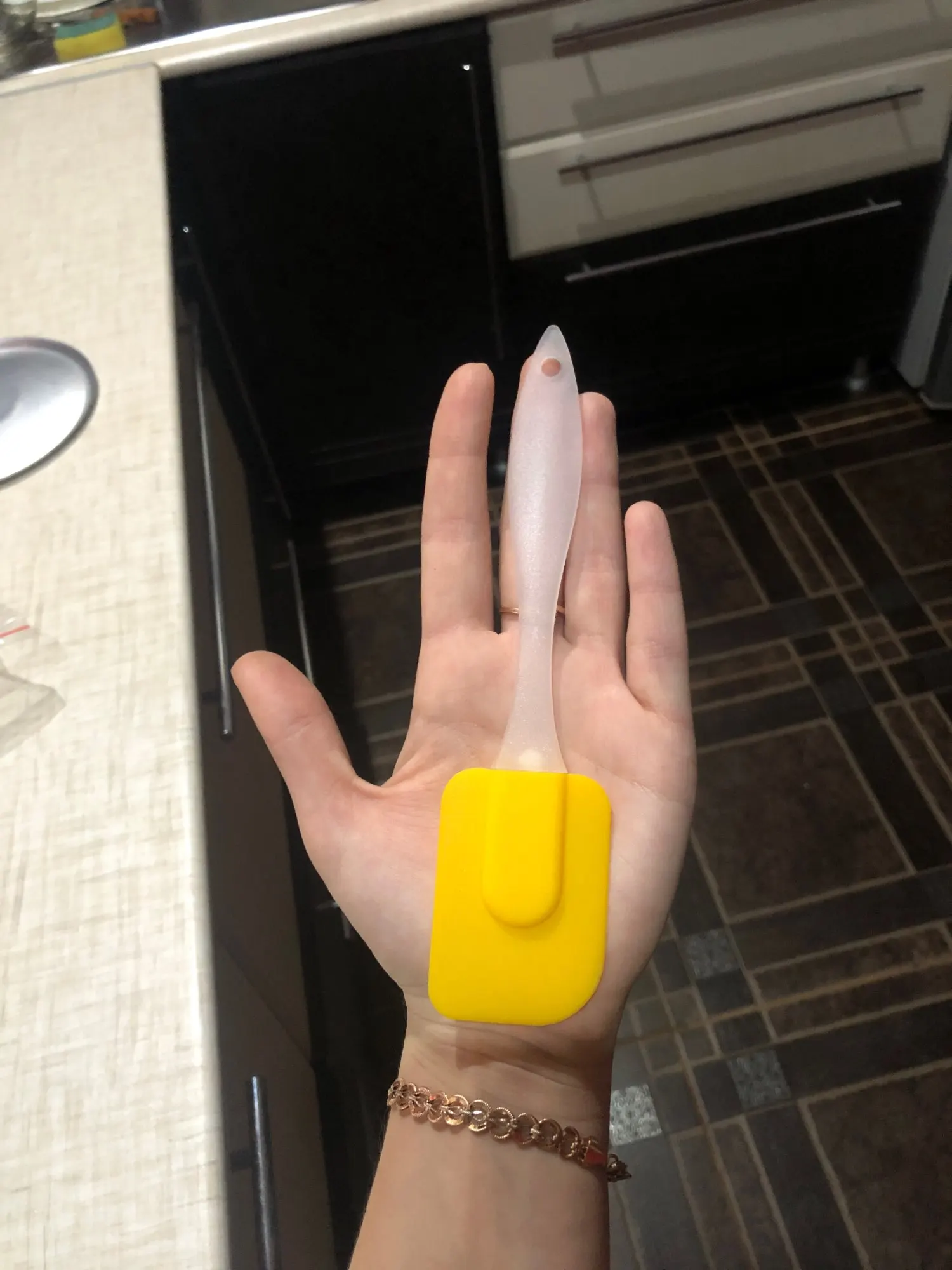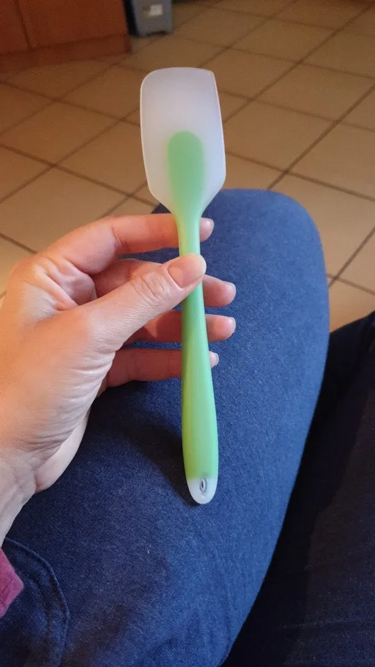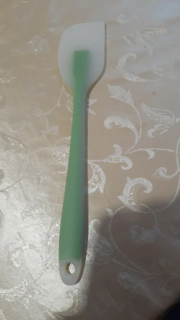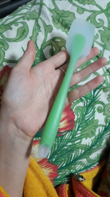 Странно, заказала розовую, понравилась и сразу заказала голубую, розовая очень пластичная и ей не удобно перемешивать, ручка гибкая, хотя размер маленький, как я и искала, голубая пришла с твердой ручкой, не знаю, может это временно и с мороза, но странно! Если она с твердой ручкой , то это лучшая кулинарная лопатка!!!
