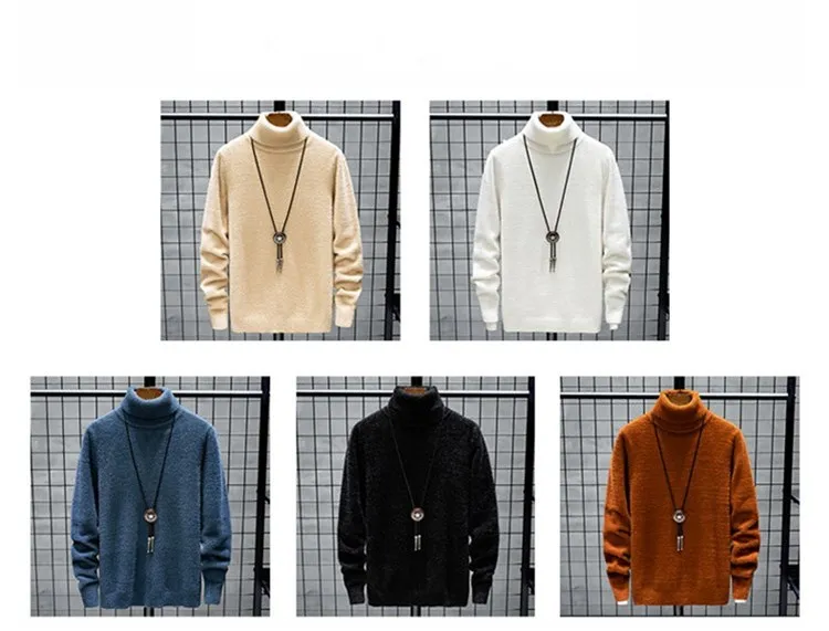 Мужской кашемировый свитер, Молодежный теплый вязаный пуловер с высоким воротником, зима 2020