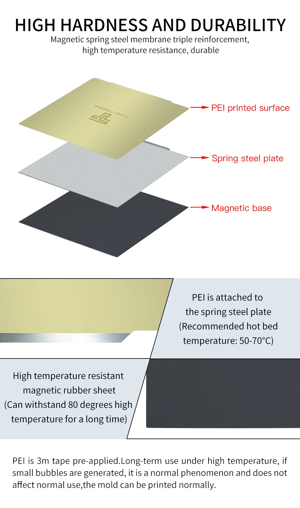 second time I've bought these two trees PEI spring steel bed plates. great quality, but I do recommend lightly scuffing the slick PEI surface with fine grit sand paper before trying to print on it for the first time.