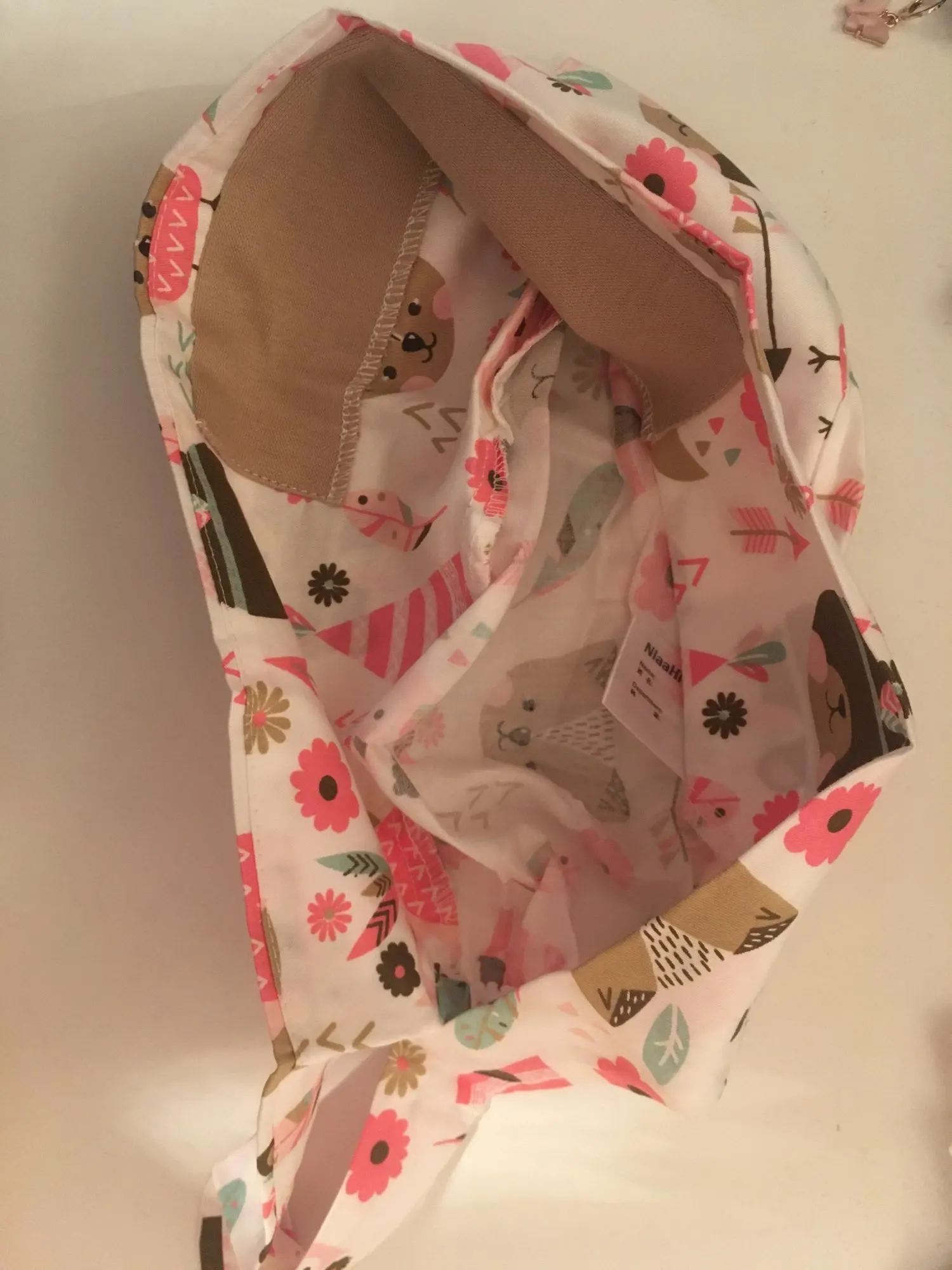 Клёвая шапка! Цвета насыщенные, принт вообще обалденный, особенно ленивцы) С внутренней стороны нашивка под лоб, удобно : не натирают швы, пот впитывает. Завязки добротные. К сожалению фотки нет, так как она уже верой и правдой служит на работе). С продавцом не общалась. При необходимости закажу ещё у этого же продавца.