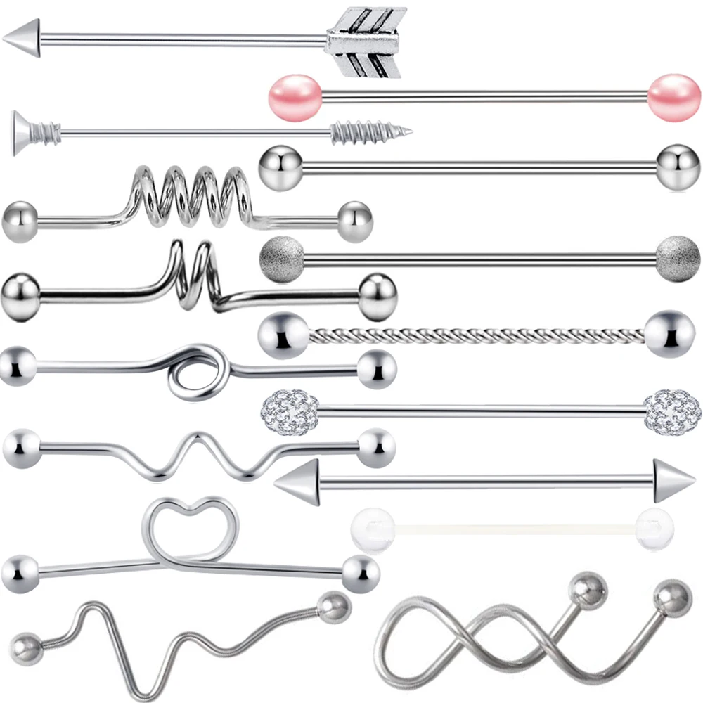Серьги-шарики из нержавеющей стали В индустриальном стиле, серьги-штанги с кристаллами, ювелирные изделия для пирсинг тела, ушей, раковины, 14 г, 38 мм, 1 шт.