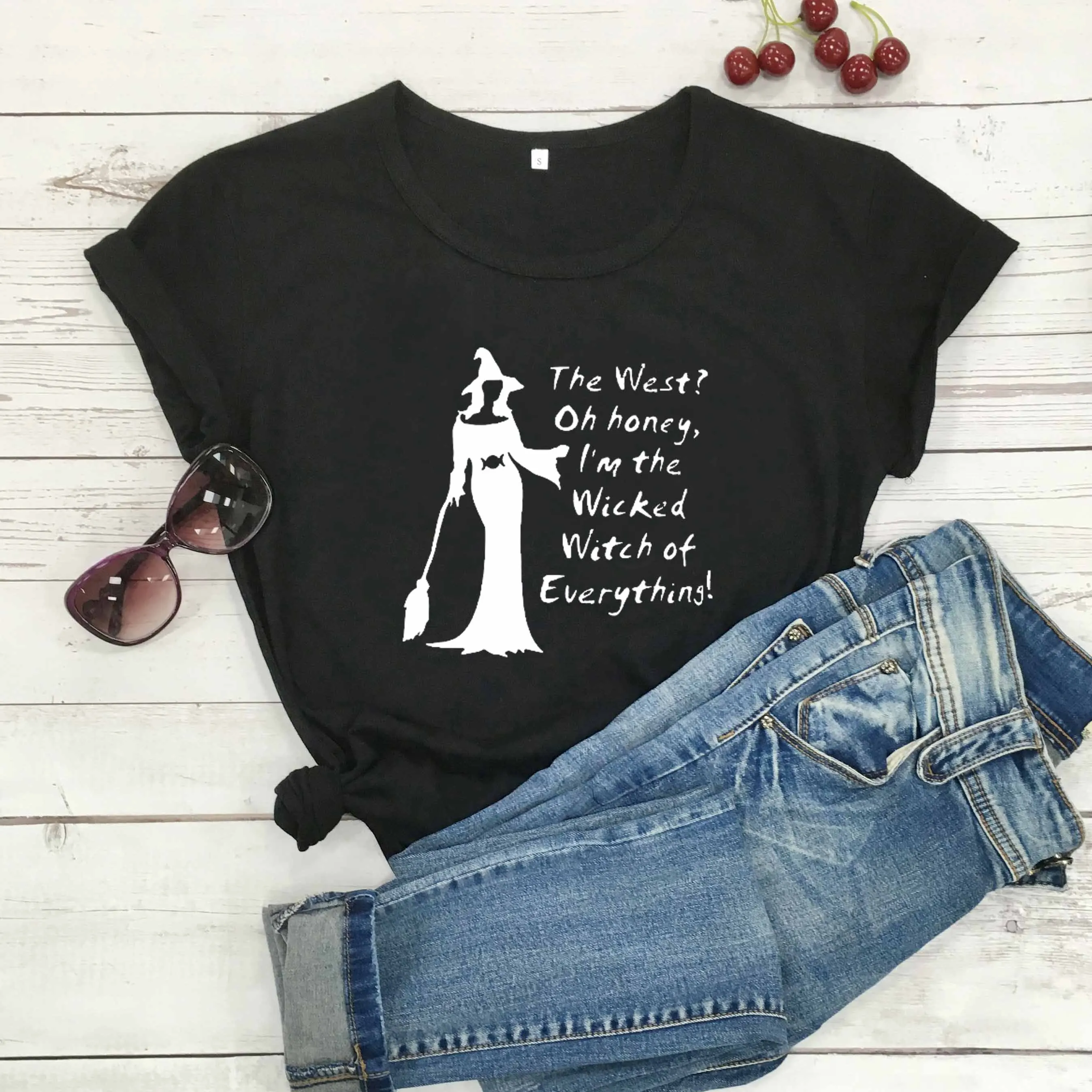 Хит продаж, рубашка на Хэллоуин с изображением Запада, о, меда, я Плохая Ведьма из всего, футболки из чистого хлопка с рисунком гранж и tumblr, хипстерские художественные Топы