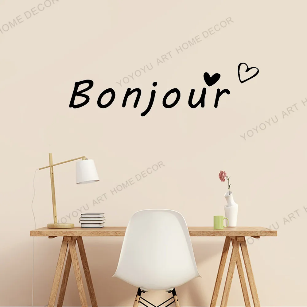 Самоклеящиеся настенные наклейки с надписями Hello, французский домашний декор, цитаты для спальни, шкафа, классной двери, виниловые наклейки WZ187