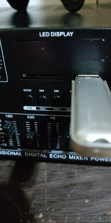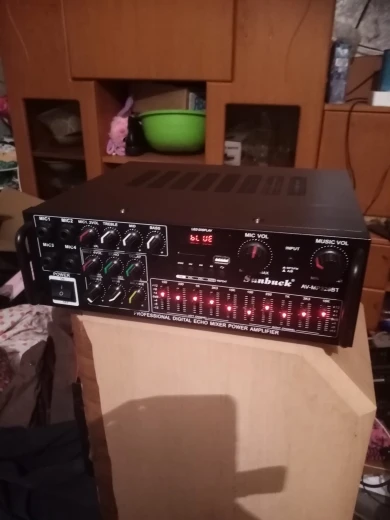 Это продукт, который я уже знал, и он прибыл через пару дней и в отличном состоянии, он работает очень хорошо. Он принимает карту и карандаш для воспроизведения музыки и имеет четыре входа микрофона для караоке по bluetooth с мобильного телефона или ноутбука и имеет заднюю вход для телевизора, например, хороший выход мощности по очень доступной цене.