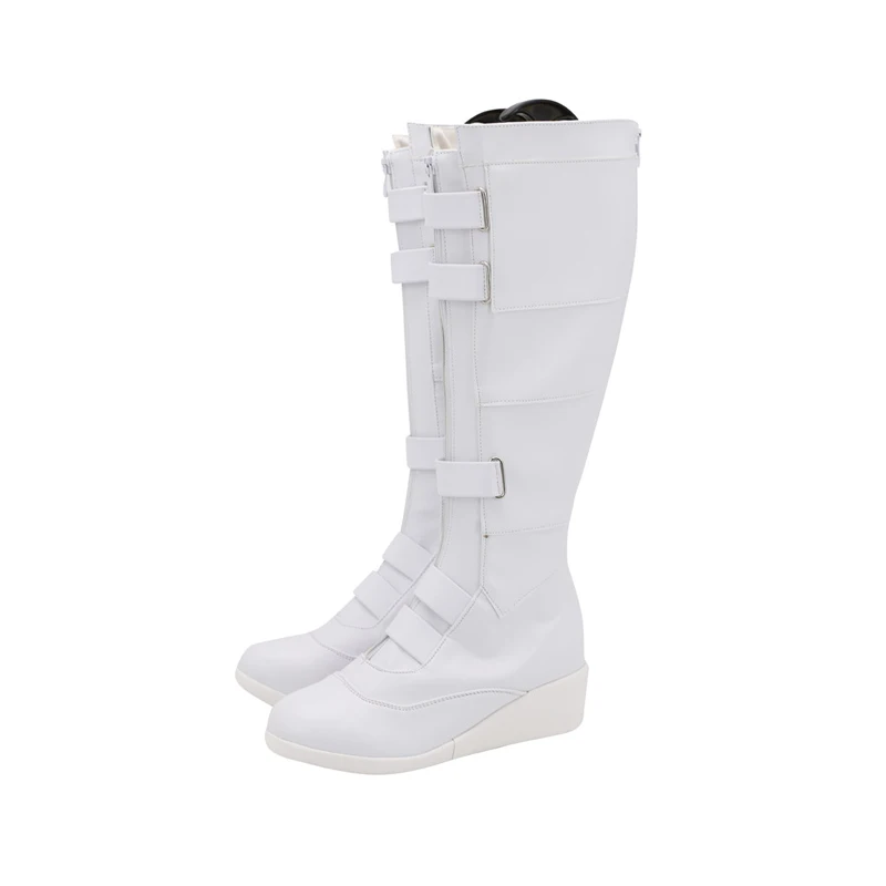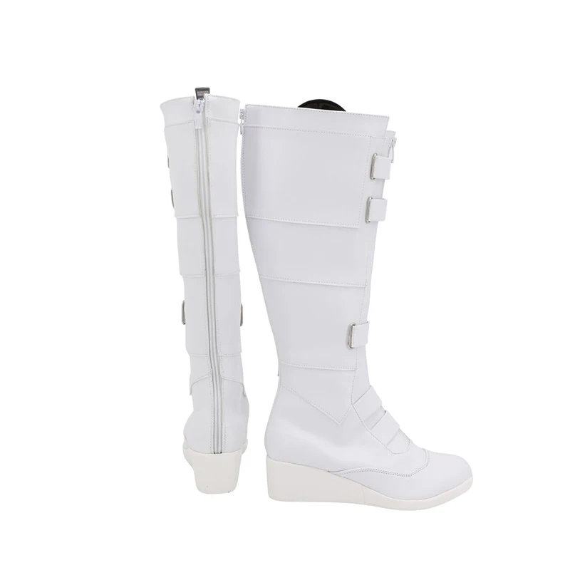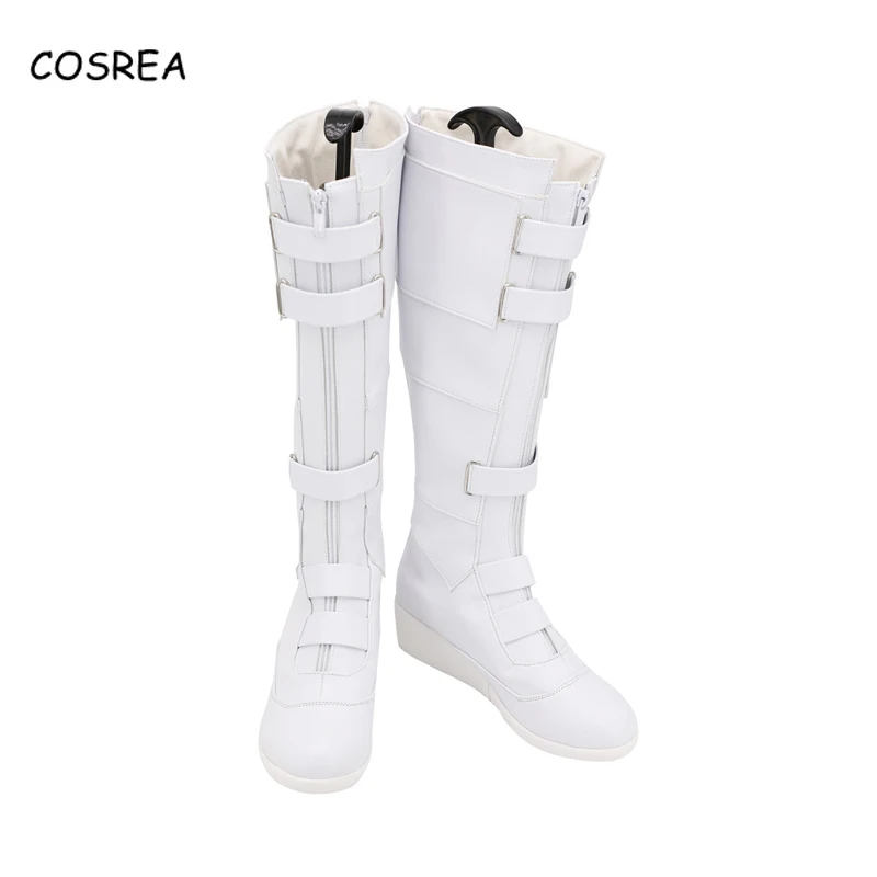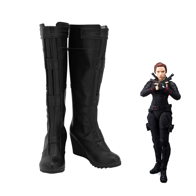Популярные черные белые ботинки вдова; Хеллоуин костюм супергерой; Обувь черная вдова; Белые кожаные ботинки; Обувь для костюмированной вечеринки Наташа романофф