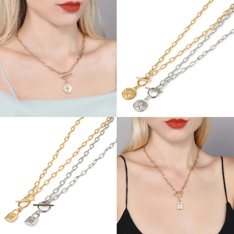 Модное женское ожерелье из нержавеющей стали для женщин, винтажные ...