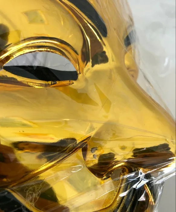 Трещина на подбородке, коряво прорезан рот, сразу оторвалась резинка. Вторая маска из заказа (N2) хорошая.