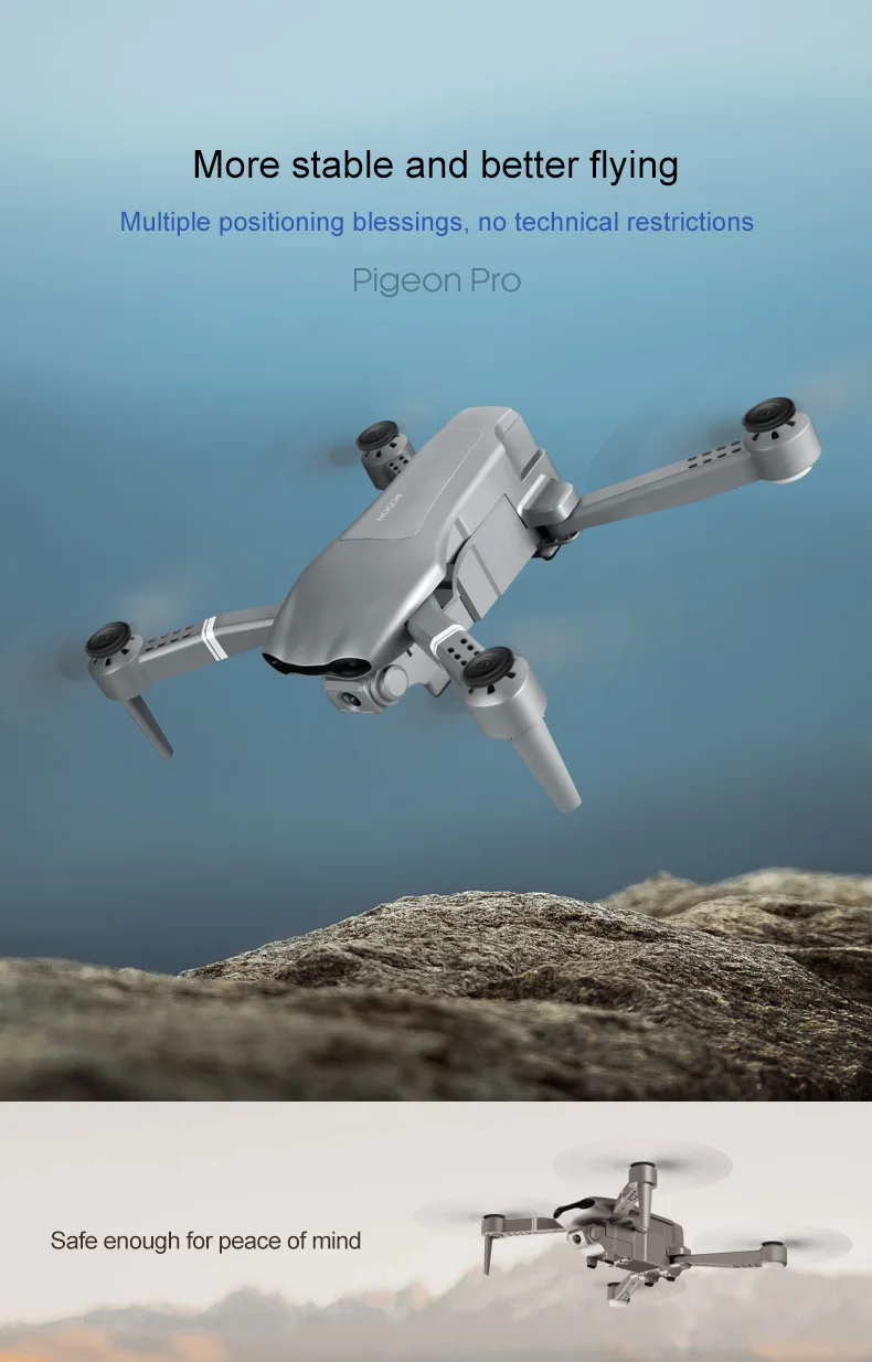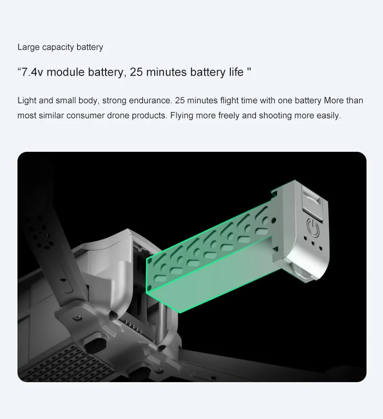 -Светодиодный светильник-Модульная Батарея: безопасная, быстрая зарядка. Легкая замена.-1080P HD Аэрофотосъемка, запечатлевает каждый прекрасный момент.-Быстрое складывание: складывается, легко помещается в компактную упаковку и переносится на ходу-Переключатель скорости-Барометр для удержания высоты и оптического позиционирования потока: благодаря этим двум функциям вы можете легко делать потрясающе острые изображения.-Пульт дистанционного управления 2,4G: до 50 метров диапазона передачи.-Умный Безголовый режим: Безголовый режим делает вашу работу проще, чем когда-либо. Он летит относительно Вас независимо от того, где он расположен.-Возврат одной кнопки: благодаря встроенной системе позиционирования вы можете вернуть Дрон обратно в точку «Домой» одним нажатием кнопки в любой ситуации.-Wi-Fi передача в режиме реального времени