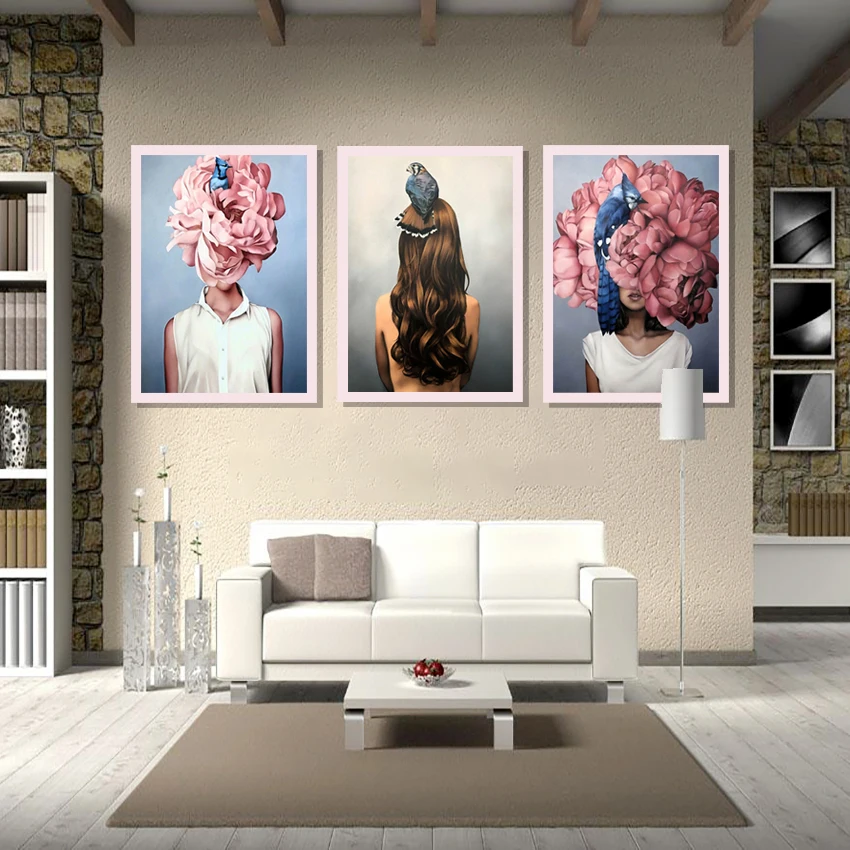Скандинавская Милая птица, леди, фигурка животного, Картина на холс...
