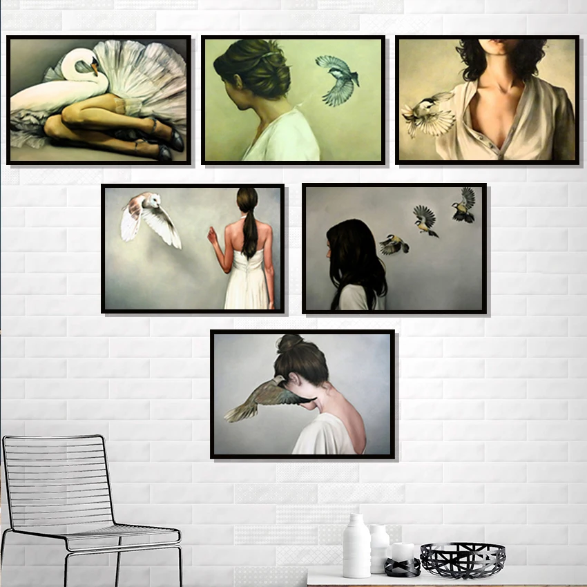 Милая птица, леди, домашний декор, искусство на стене, животное, рисунок, фотография, для гостиной, Декор