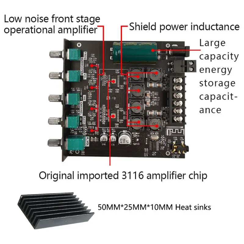 TPA3116D2 Bluetooth 5,0 2,1 каналов мощность аудио стерео сабвуфер ...