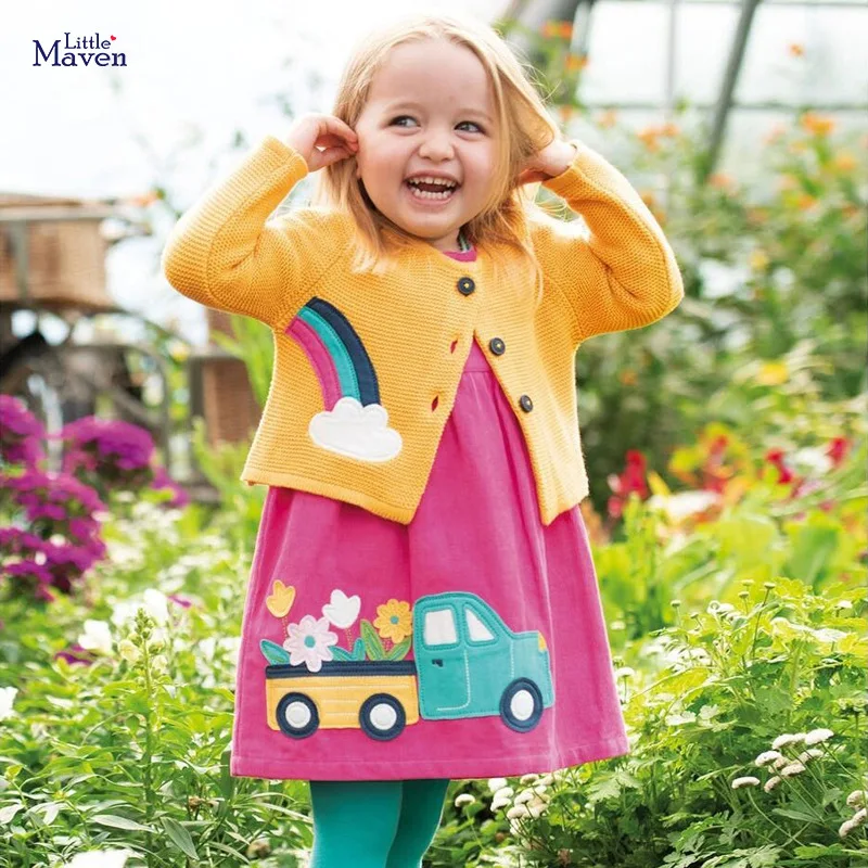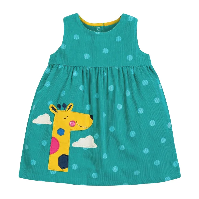 Маленькое платье maven; Вельветовое платье без рукавов для девочек; Детская одежда; Зимнее платье для малышей; Детская верхняя одежда с аппликацией носорога; Платье