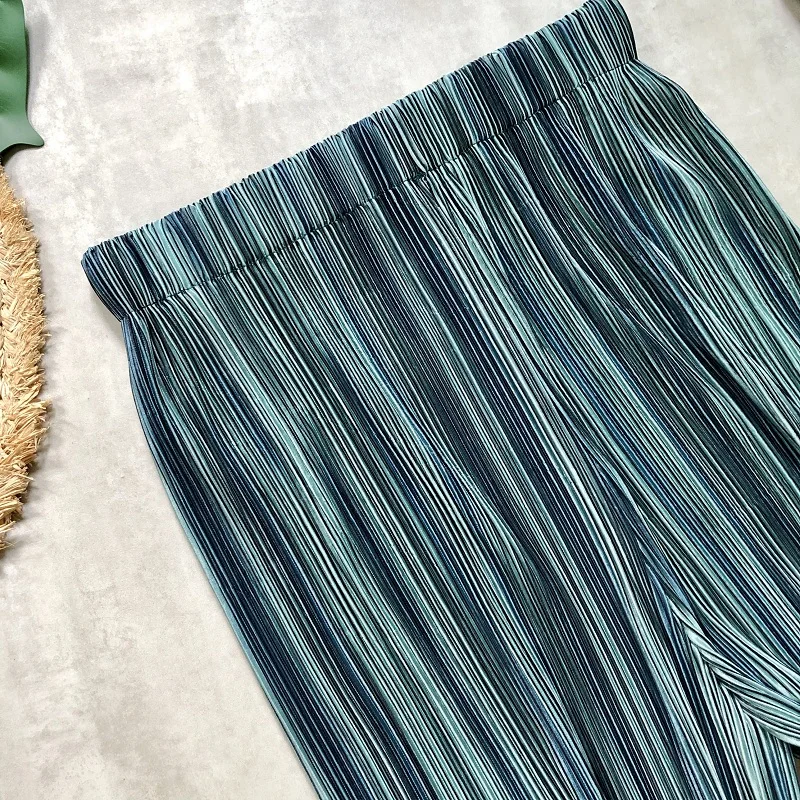 Брюки женские в полоску с широкими штанинами, зеленые свободные эластичные длинные штаны в Корейском стиле, для отпуска, на лето