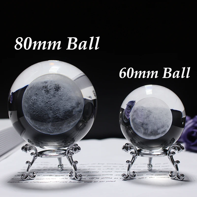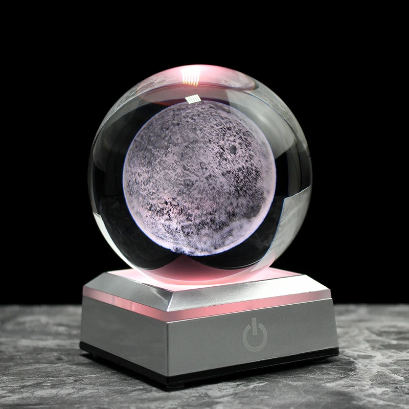 60 мм 80 мм 3D Хрустальный лунный шар стеклянная сфера снежный шар лазерная гравировка солнечная система Миниатюрная модель домашний декор астрономический подарок