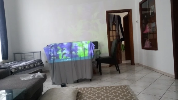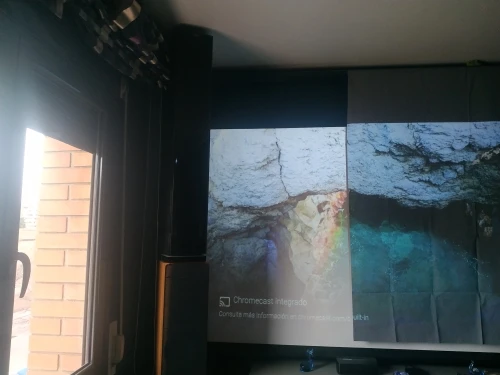 La compré por curiosidad (ya que tengo una pantalla motorizada)y el resultado es sorprendente. puedes ver tus proyecciones sin necesidad de oscurecer la sala. Ahí os dejo unas fotos sin retoques de ordenador ... jejeje. Lo difícil va ha ser quitar las arrugas de la tela, pero el material es increíble.