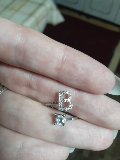 очень красивое кольцо, размер регулируется, заказом довольна, продавца рекомендую, похоже на серебро, качество отличное, не отслеживался до конца, но это не имеет значения, главное пришло, заказала еще и другие буквы у этого же продавца,