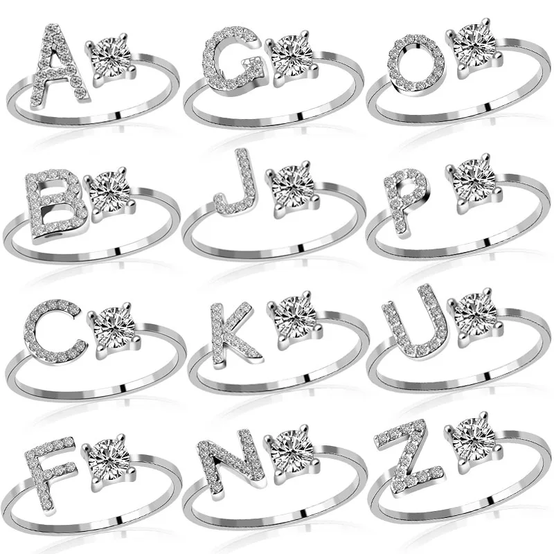 Кольцо женское блестящее, с 26 буквами, 1 шт.