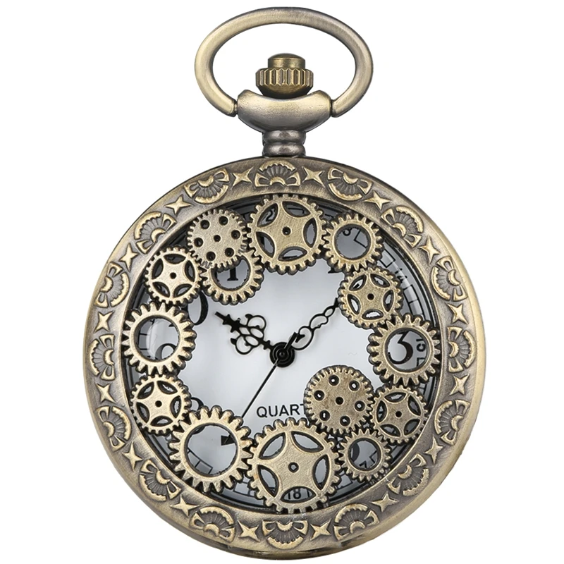 Винтажные карманные часы с бронзовым полым механизмом, кварцевый ме...