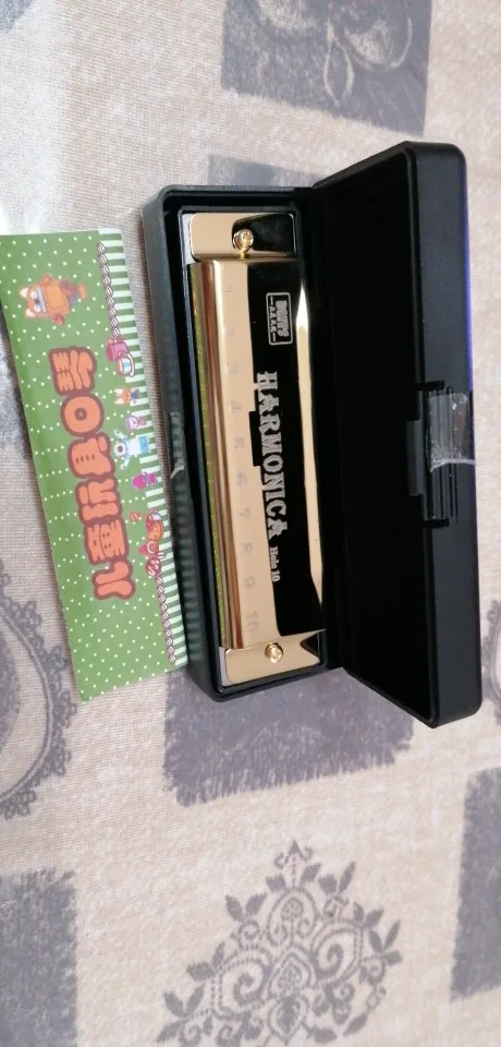 Это моя первая гармоника, поэтому не могу сказать много, но это выглядит действительно хорошо и мило. Все отверстия работают. Поставляется в черном корпусе с маленькой бумагой внутри, в котором 4 песни, которые вы можете играть