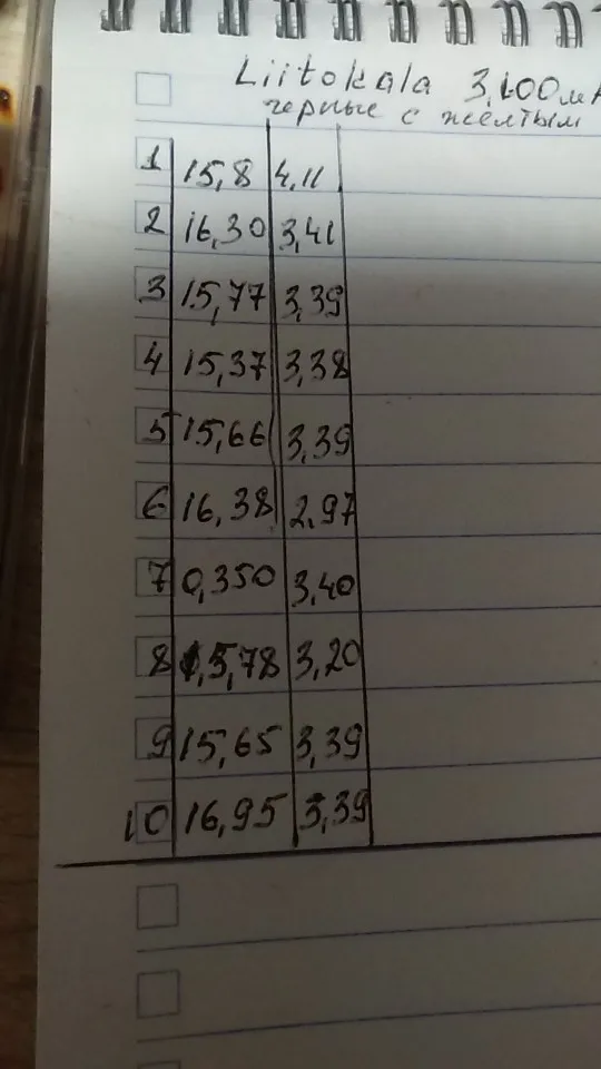 чуть больше месяца шло до ХМАО. Не в восторге, но на шурик пойдут. Заказывал 10 штук на пробу. на фото первый столбик- номер аккума, 2- сопротивление с магазина аккума, 3- напряжение на аккуме, пришедшего с магазина, 4- % показанный Vapcell S4+, 5- напряжение, 6- сопротивление , показанное Vapcell S4+, 7- заряд 1,5А 8- разряд 0,5А на Vapcell S4+ 9-мощность отличная аккумом при разряде на Vapcell S4+, ДАЛЕЕ показания снятые электронной нагрузкой. 10- напряжение, показанной эл.нагрузкой,11- примерная просадка, при начале разряда в 5А, 12- примерные показания , после окончания разряда, 13- мощность, отличная аккумом при разряде, 14- время разряда, 15- ёмкость при разряде в 5А, 16- максимальная температура, при разряде в 5А