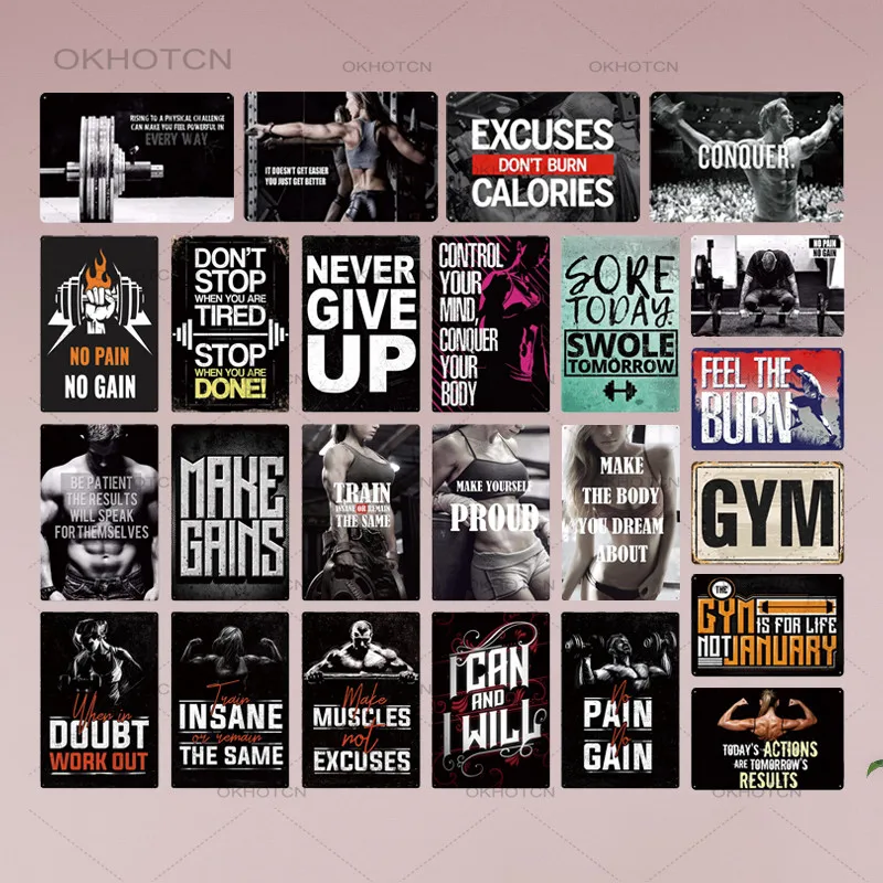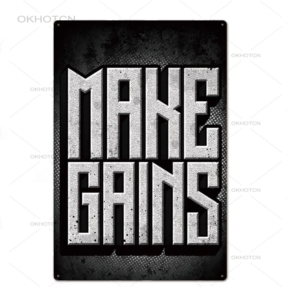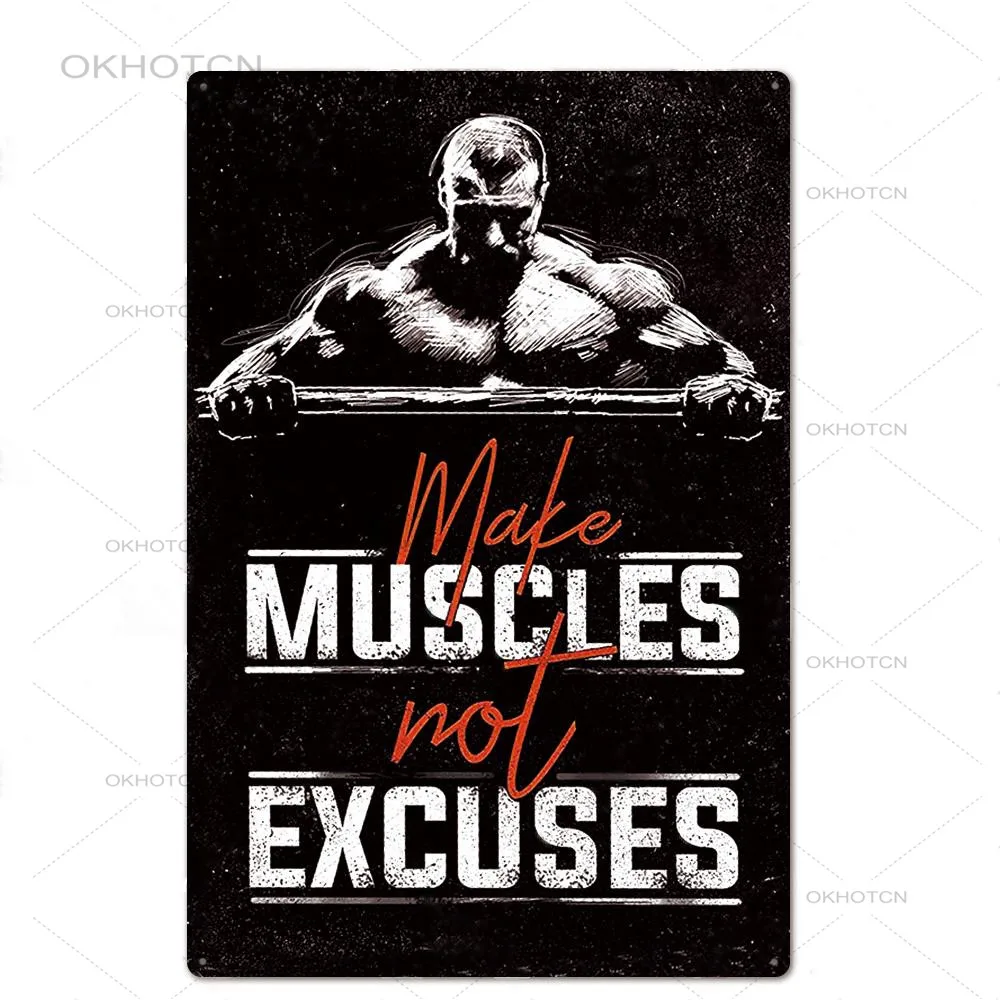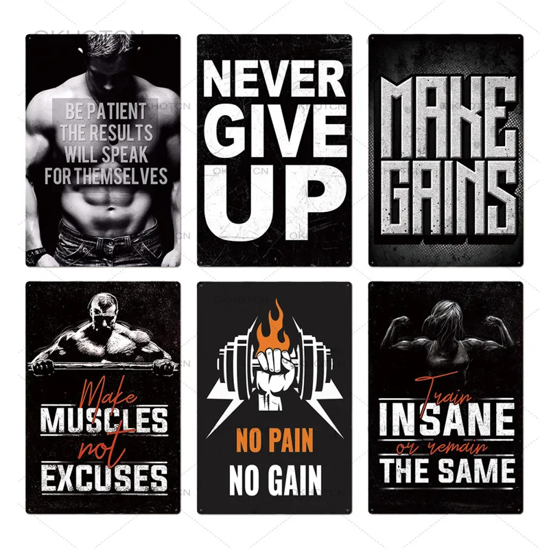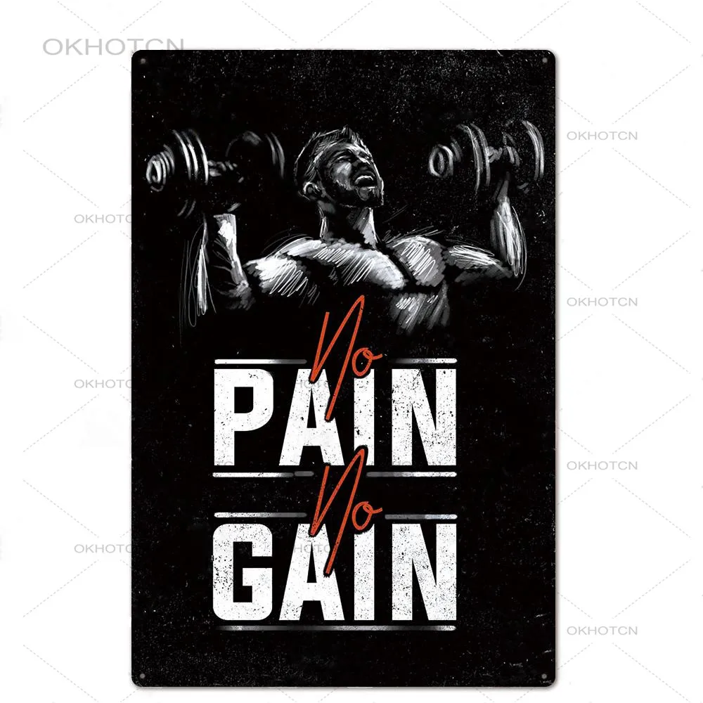 Металлический плакат для спортзала, без боли, без усиления, Оловянная табличка, настенное художественное украшение для мужчин, пещера, тренажерного зала, гостиной, декоративные железные тарелки