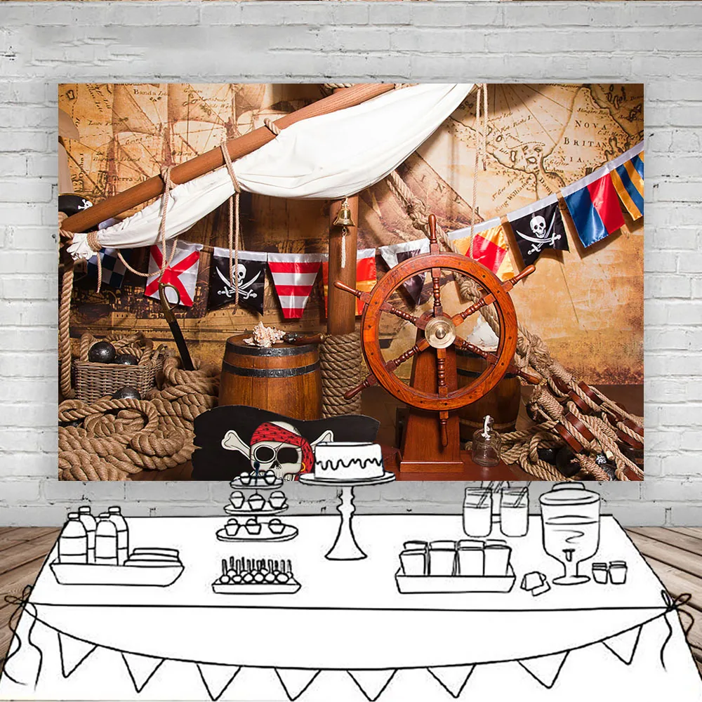 Фон с пиратским тематическим рисунком детский фон на день рождения пиратский корабль Фотофон с приключениями для новорожденных для фотостудии
