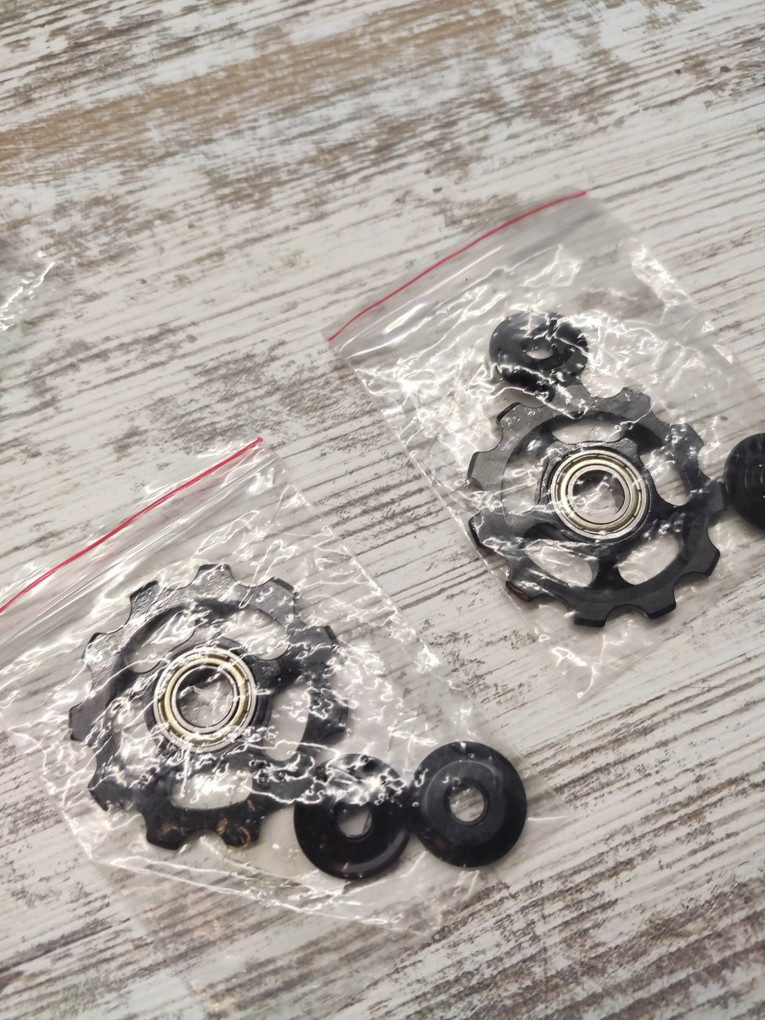 доставка супер 15 дней в Кабардино Балкарию, один ролик туговат, но не критично, второй накат отличный, по цепи бегают чётко, негде не закусывают, выполнены добротно, магазин и товар рекомендую однозначно, брал 11т на переключатель alivio m4000 9 скоростей.